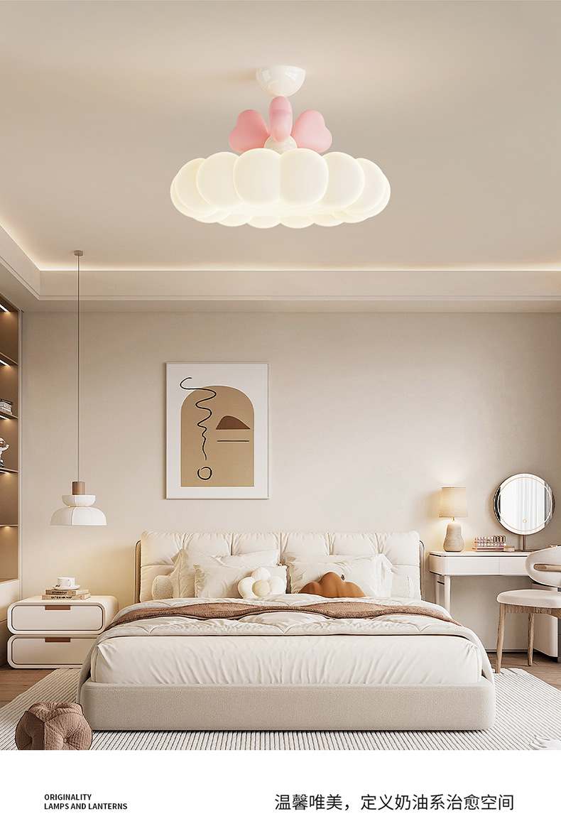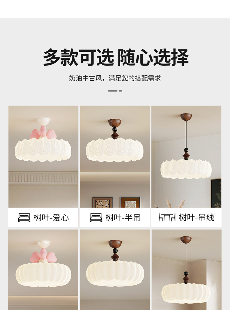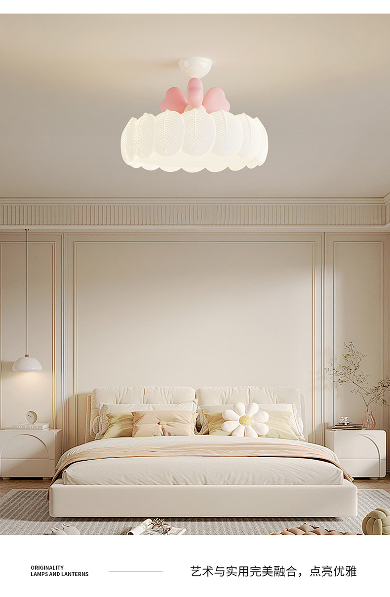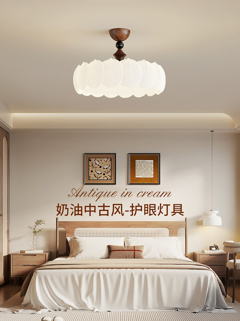 儿童法式中古奶油风卧室灯吸顶灯复古创意羽毛滚塑吊灯主卧房间灯