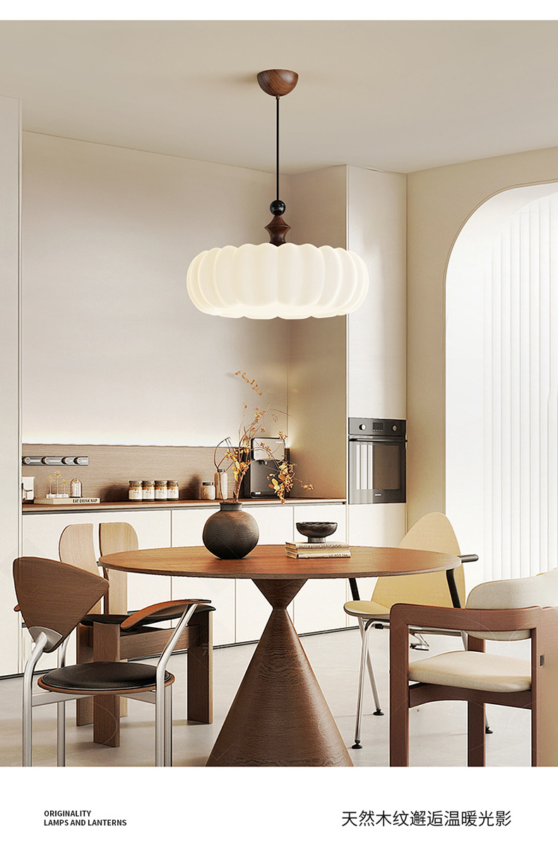 日式侘寂创意餐厅吊灯高端大气白蜡木中古灯网红款布艺复古卧室灯