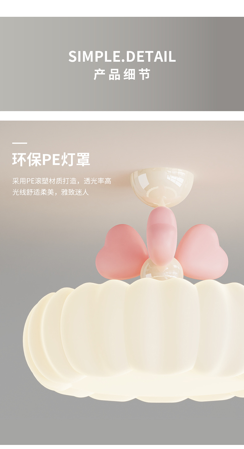 奶油中古风隐形风扇灯房间南瓜卧室吸顶灯餐厅客厅电扇一体吊扇灯