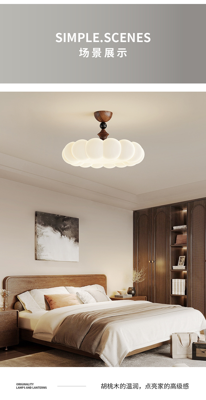 フレンチミッドセンチュリースタイルのリビングルーム用シャンデリア、レトロなウォールナット材、2024年新作照明、デザイナーズセンスの主寝室用ランプ