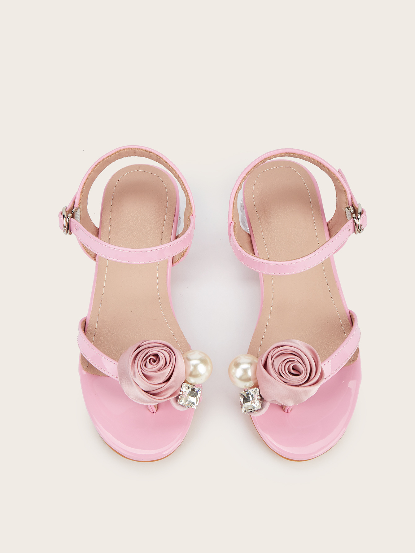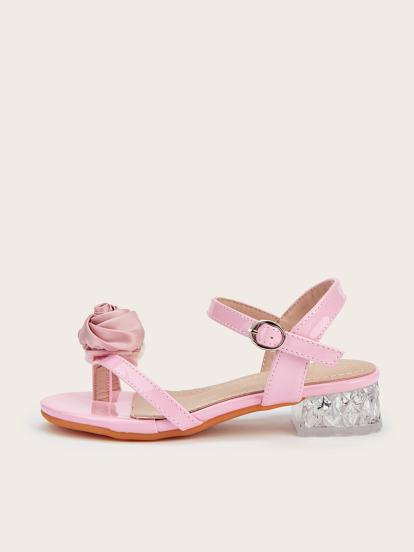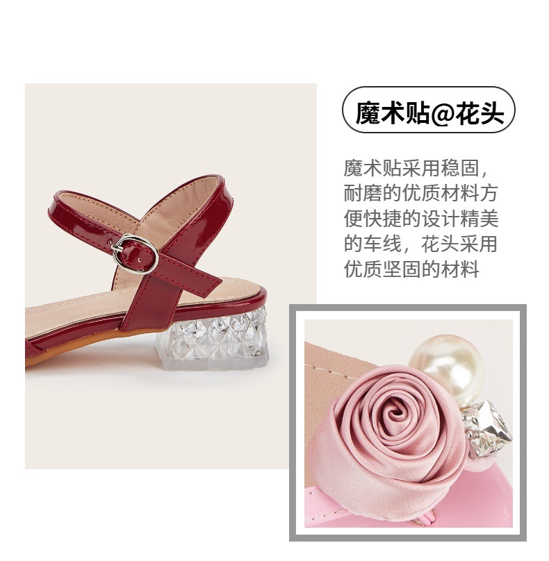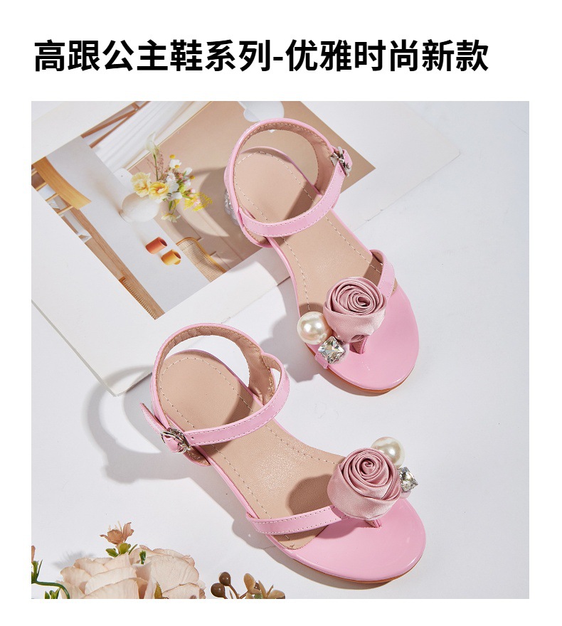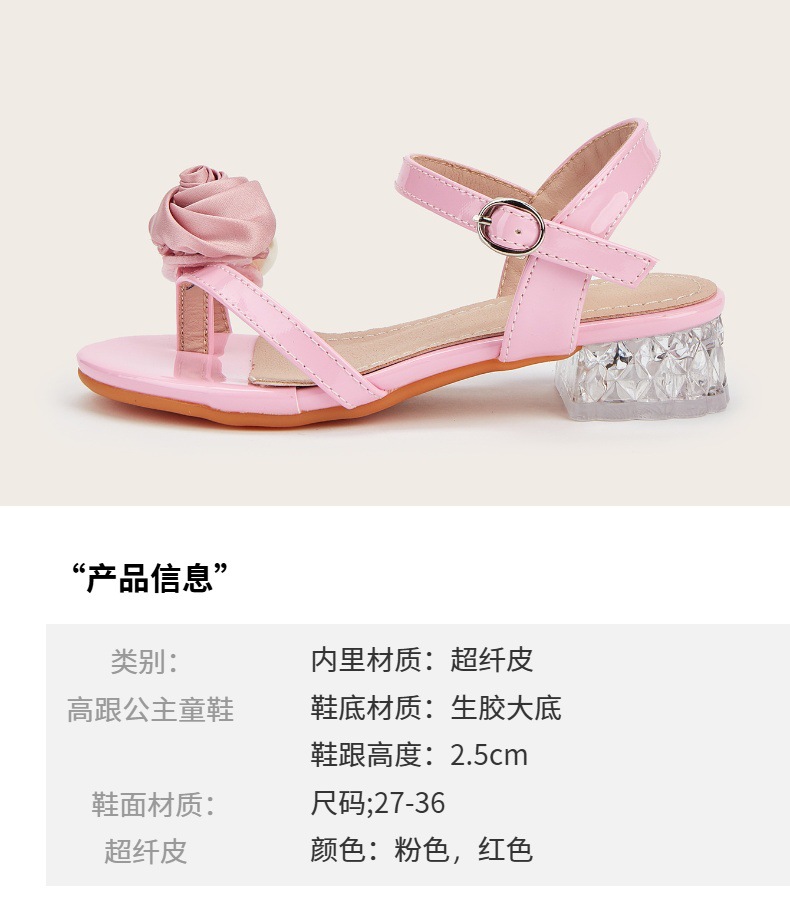 2026新款鞋子女宝时尚外穿粗跟高跟鞋花朵小花露趾粉色女童凉鞋