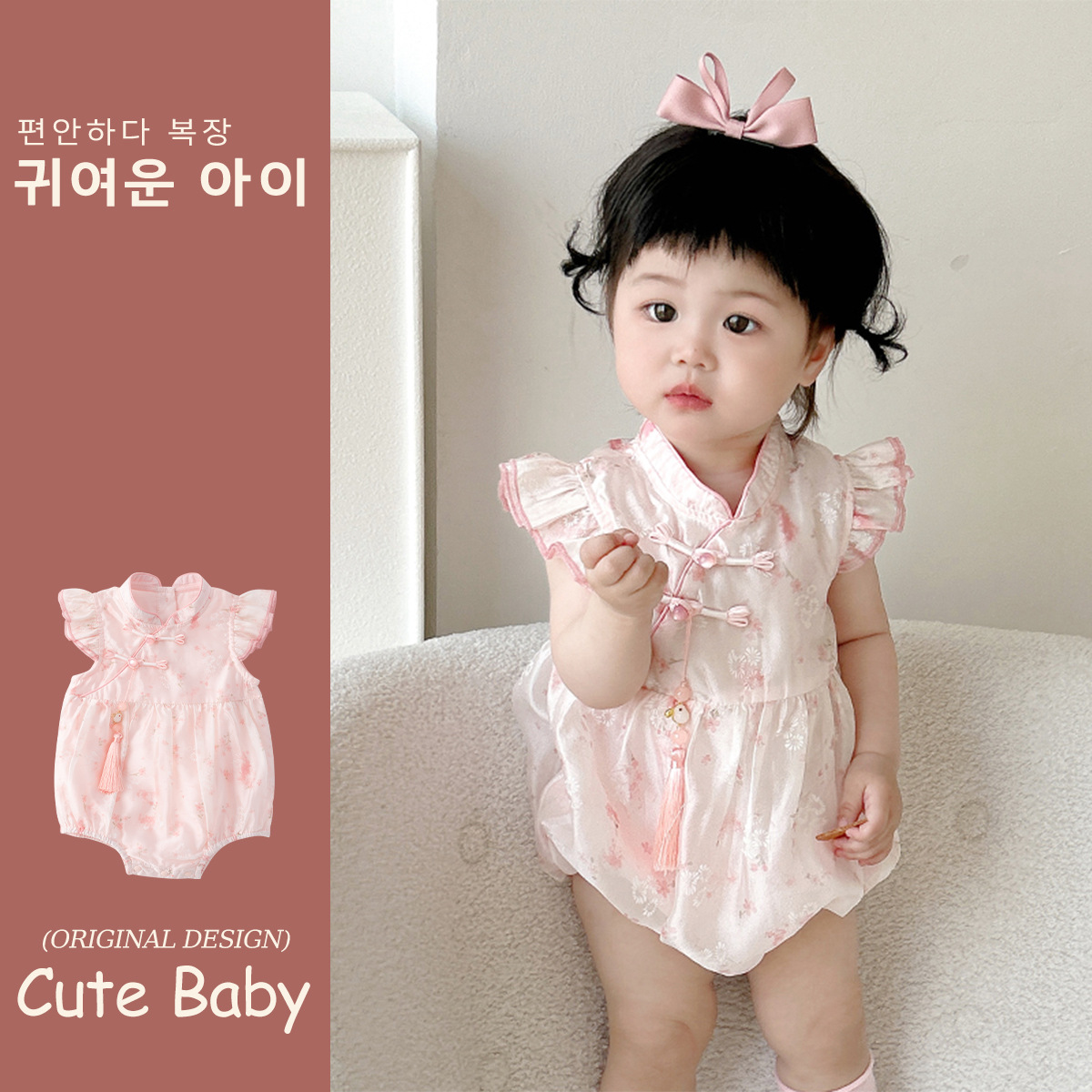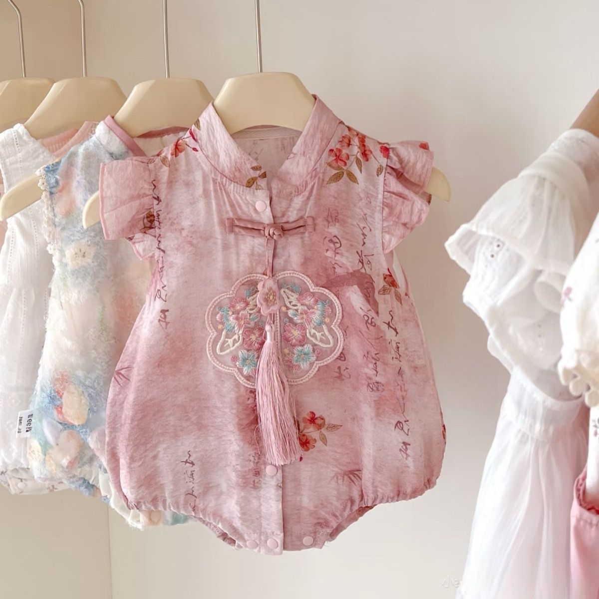 女宝宝初夏国风旗袍包屁衣婴儿飞袖唐装公主百天周岁仪式感外出服