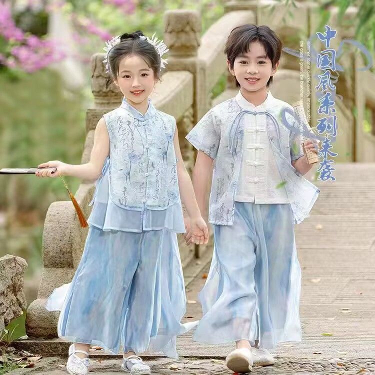 男の子と女の子の秋の新しい中国風の漢服スーツ古代スタイルの中秋節の服幼稚園のパフォーマンスの服
