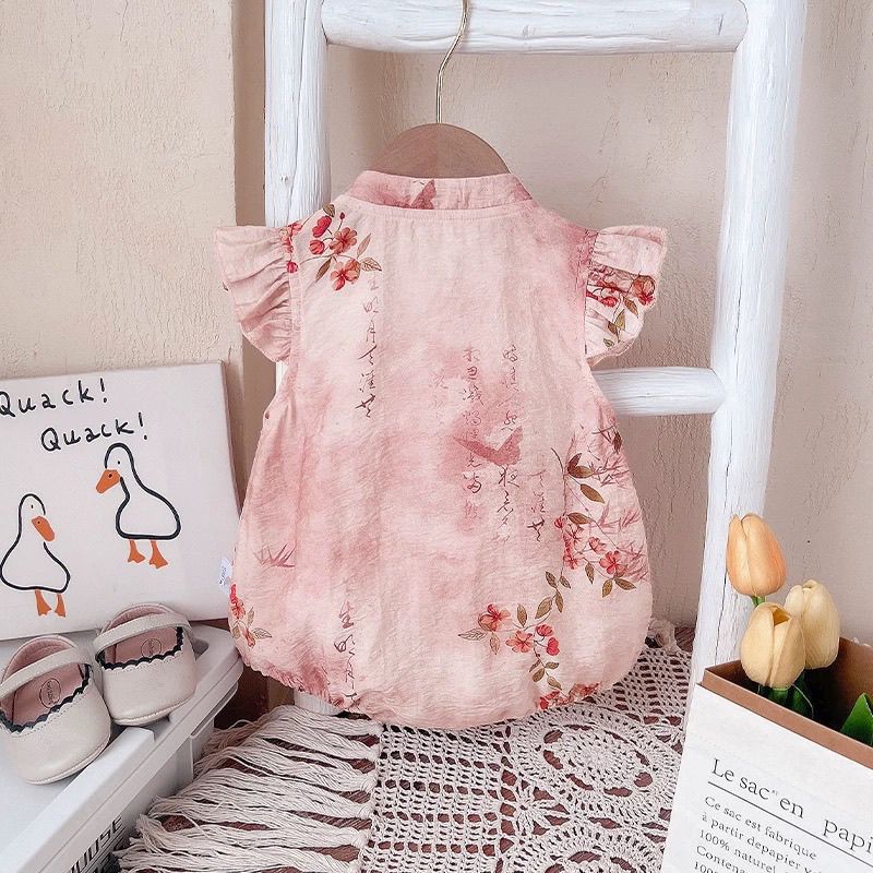 ベビー服、夏用ジャンプスーツ、ロンパース、女の赤ちゃん服、中国風の新しい中国風漢服、夏のお出かけ服