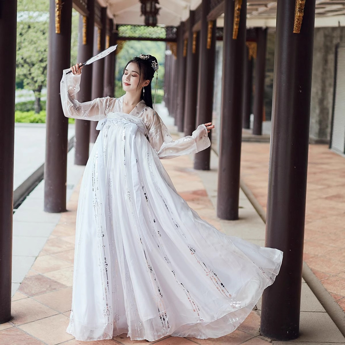 新しいスタイルの漢服女性のエレガントな中秋節嫦娥妖精中国風の大きな袖シャツ胸までの長さのスカートホットスタンピングスカート