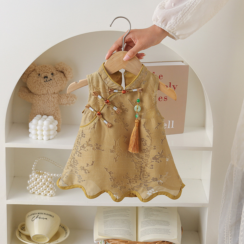 赤ちゃんのお尻の服の人糸のチャイナドレスの半袖のワンピースの夏の薄いタイプの新型の赤ちゃんの新生児の中国式の夏のタイプ