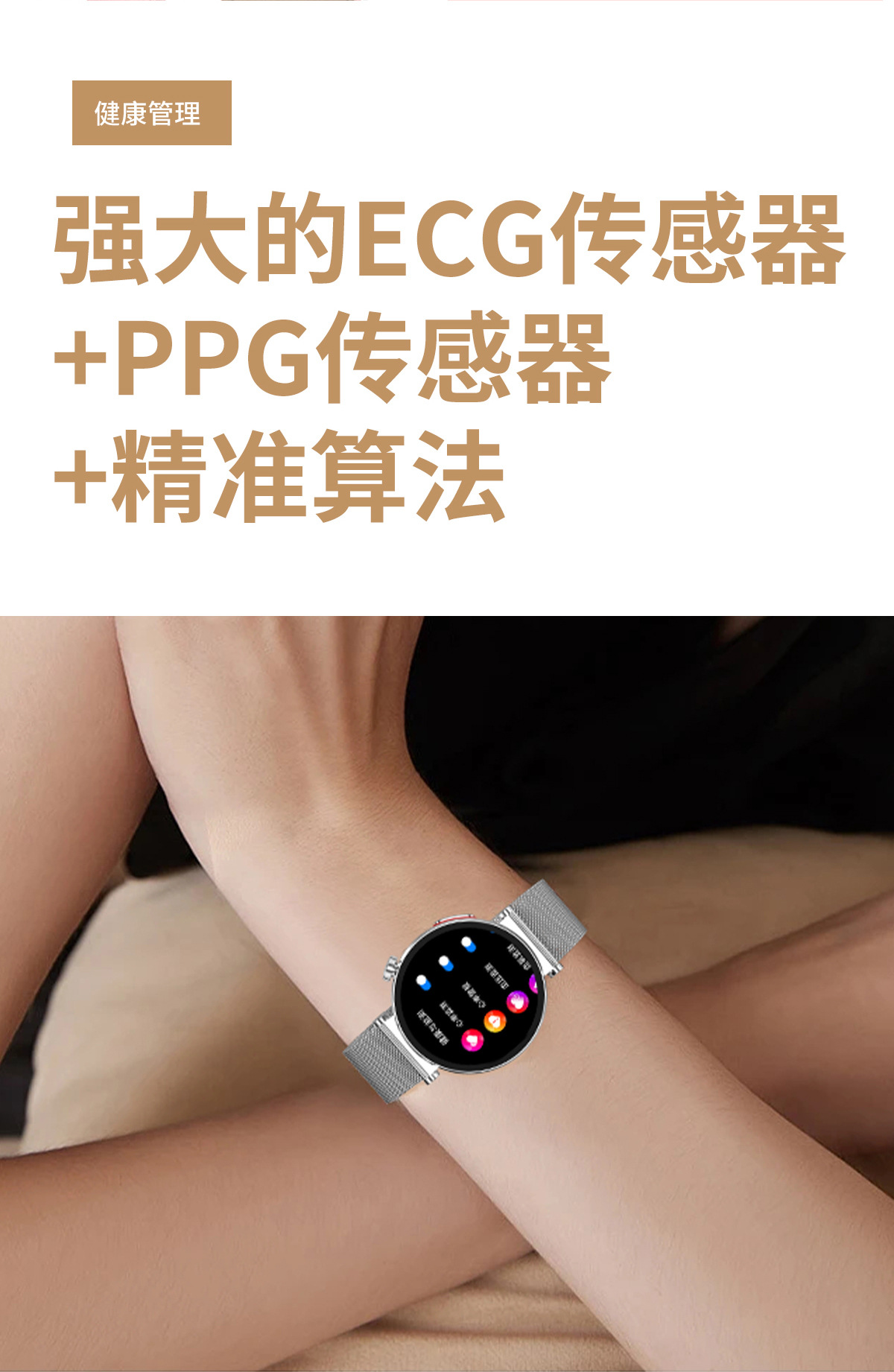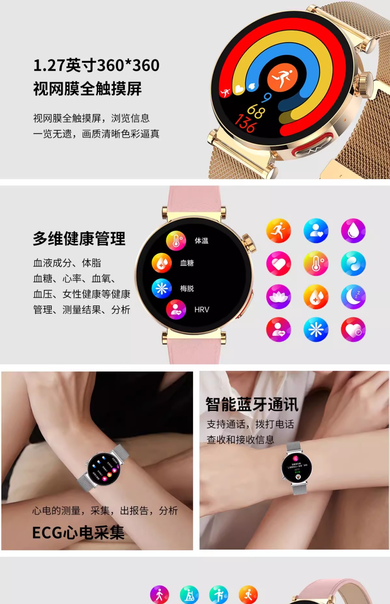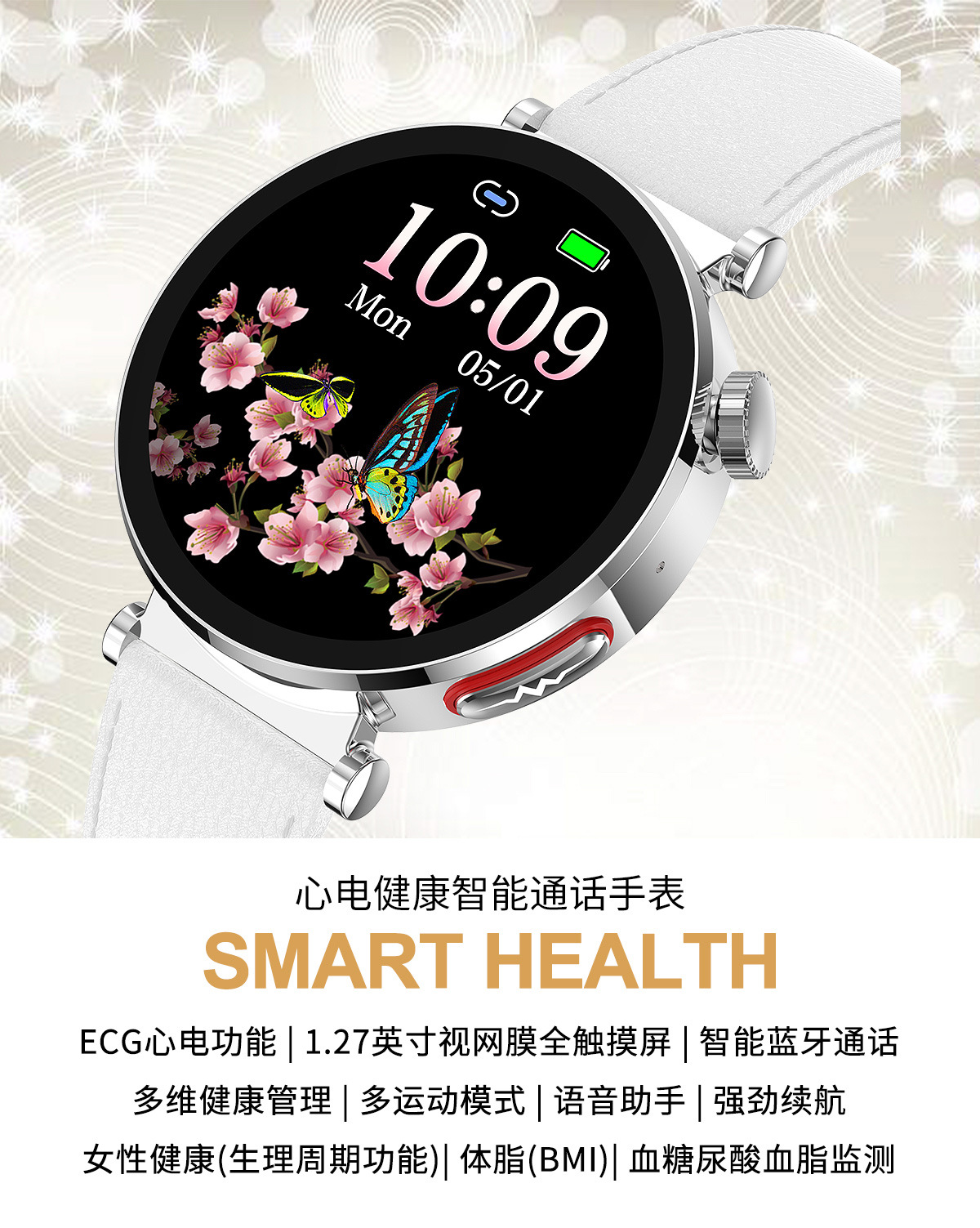 【女神限定】高精度血圧・血糖リスク評価スマートウォッチ 心電図 心拍数 Bluetooth通話機能