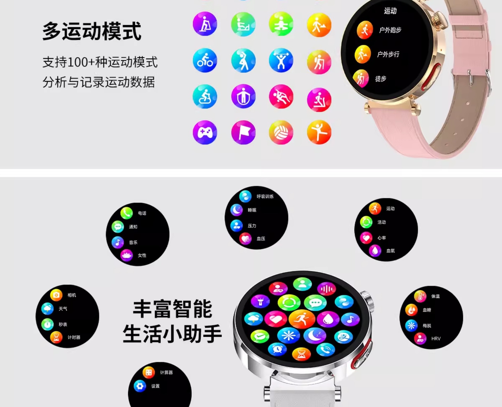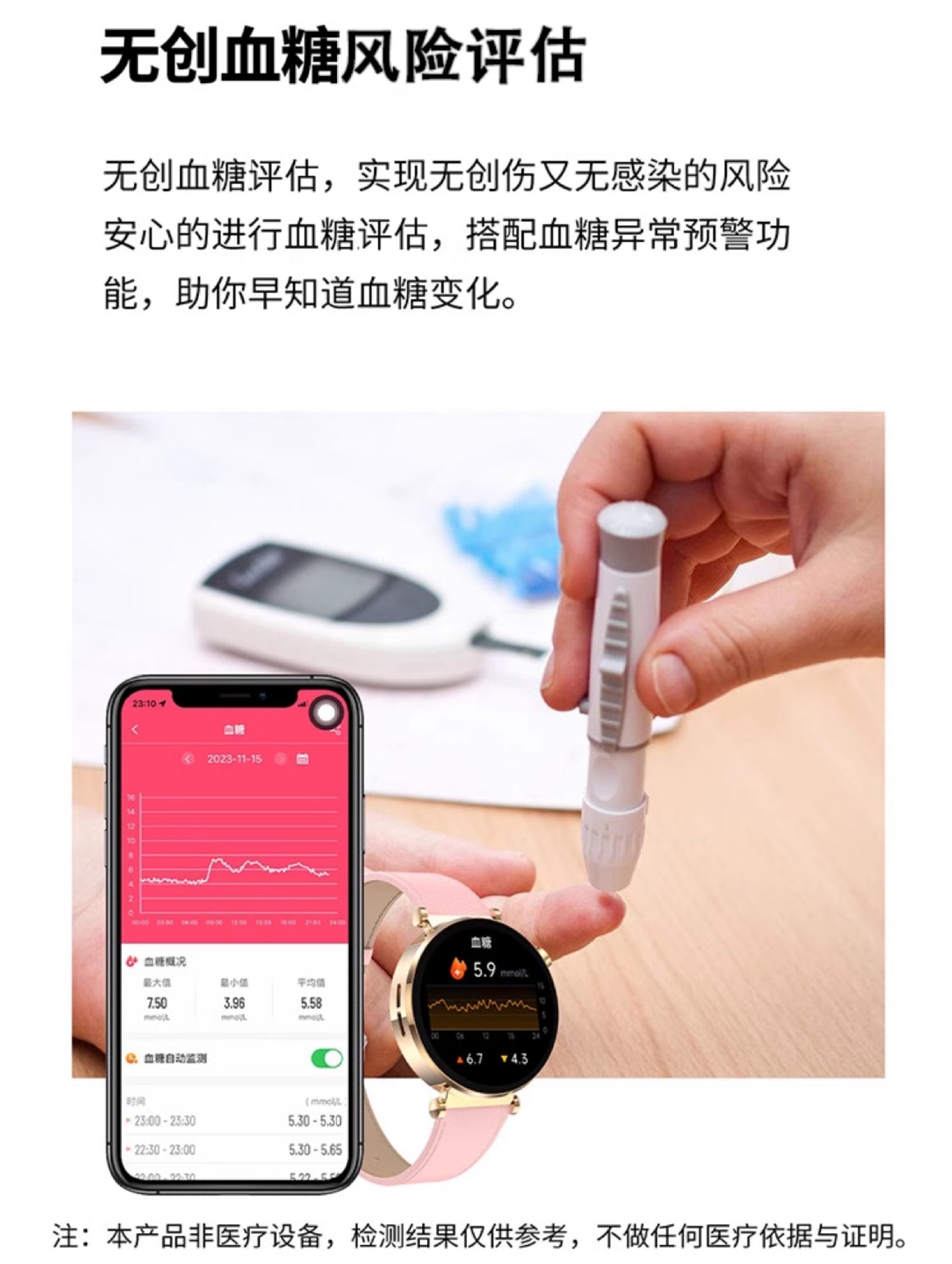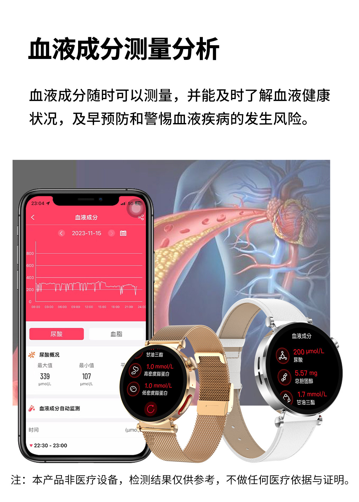 【女神限定】高精度血圧・血糖リスク評価スマートウォッチ 心電図 心拍数 Bluetooth通話機能