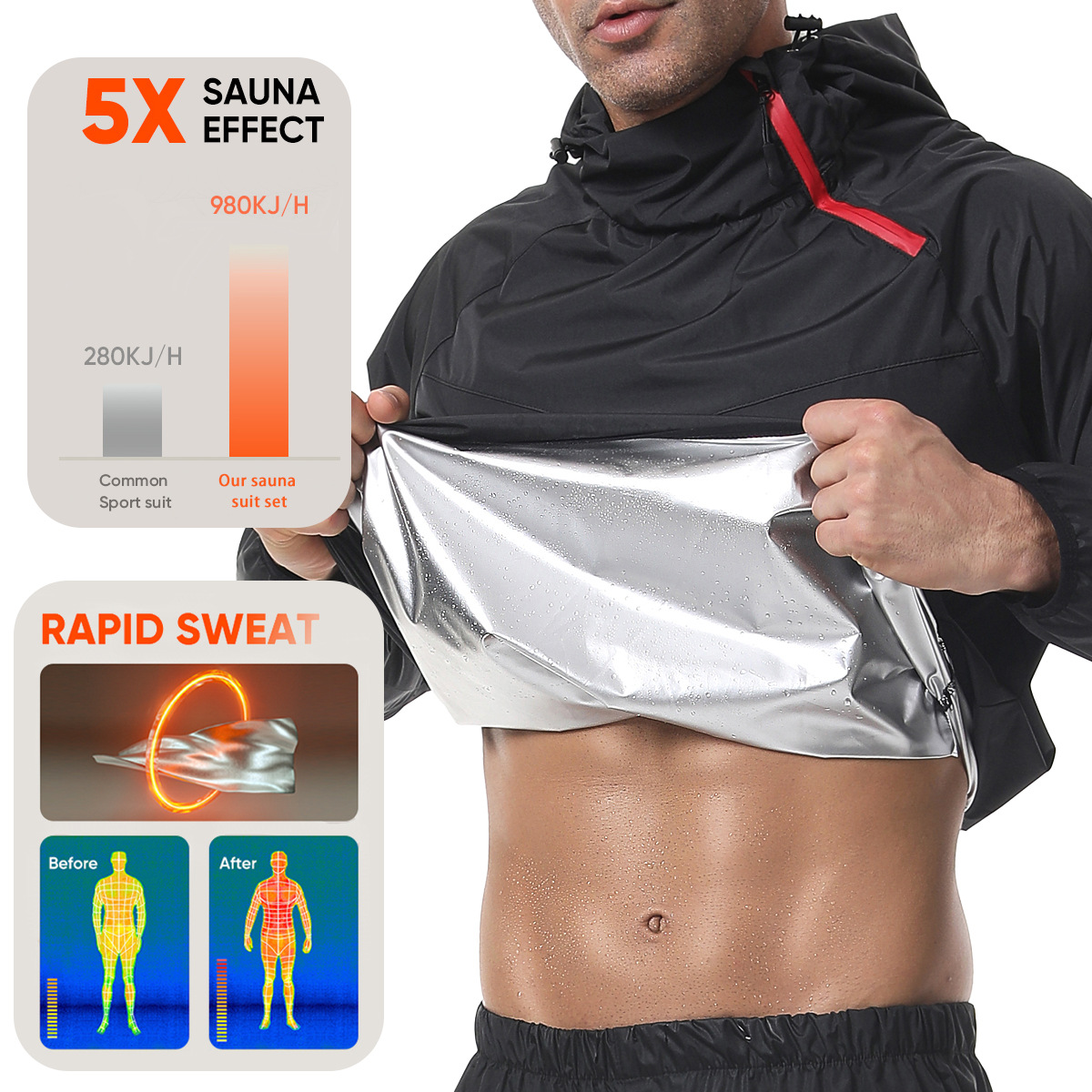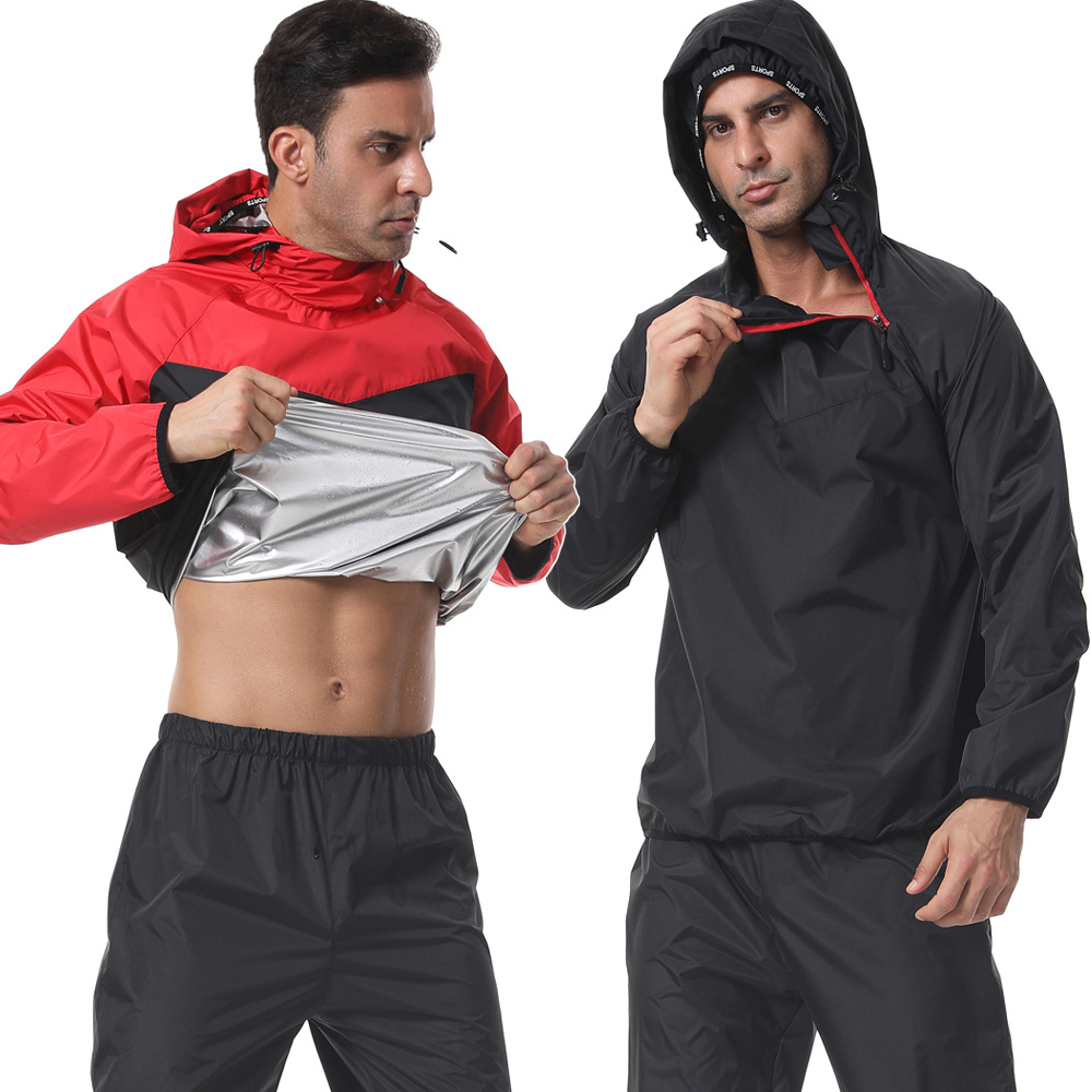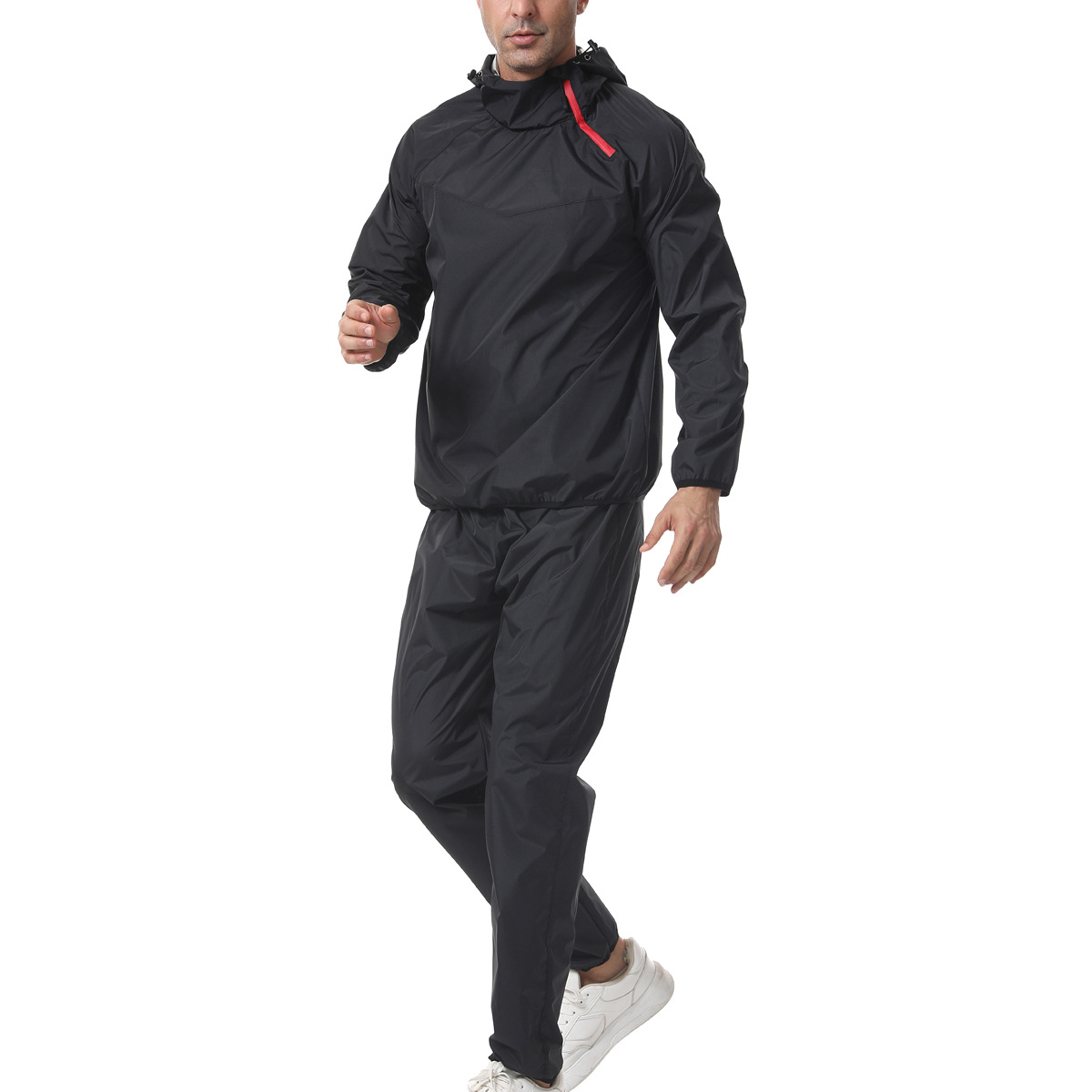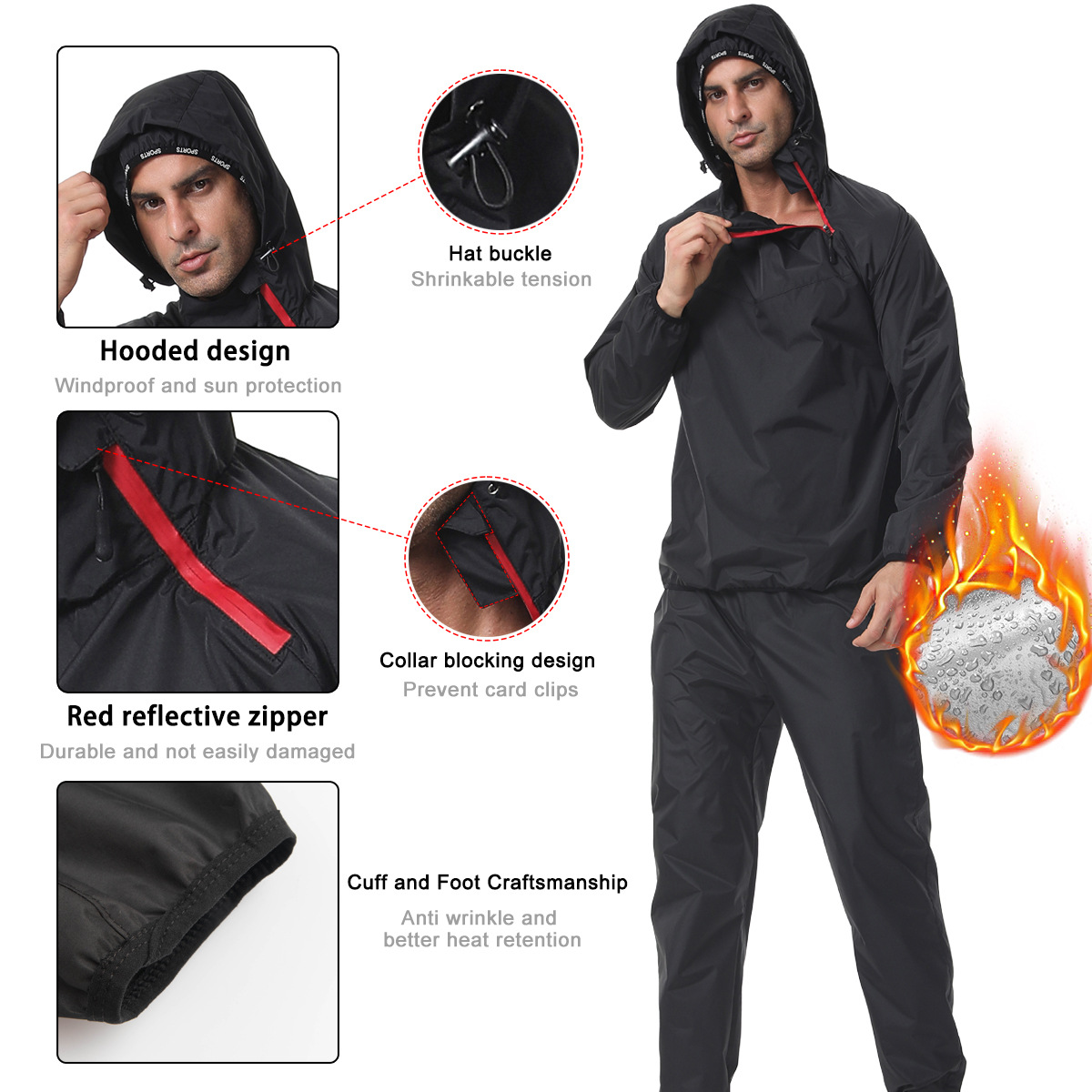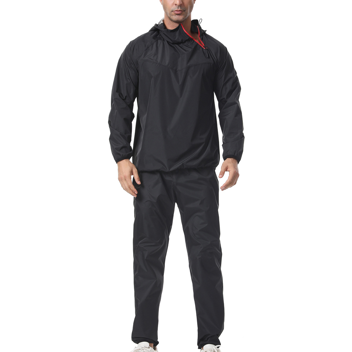 暴汗服亚马逊男士跑步运动健身服连帽运动套装跨境爆汗塑身桑拿服