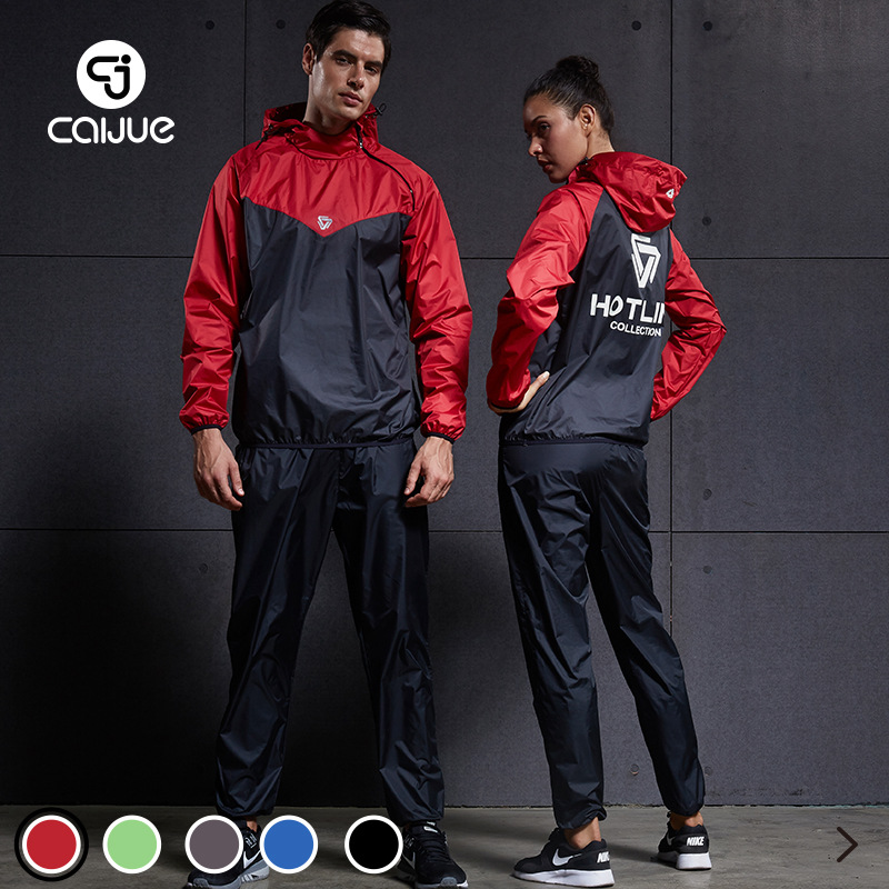 高品質の輸出用発汗服、スポーツ用フード付きスーツ、女性用トレーニングウェア、男性用フィットネスウェア、カップル用ツーピースセット