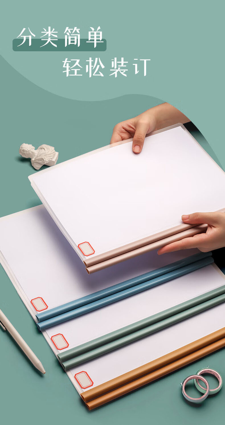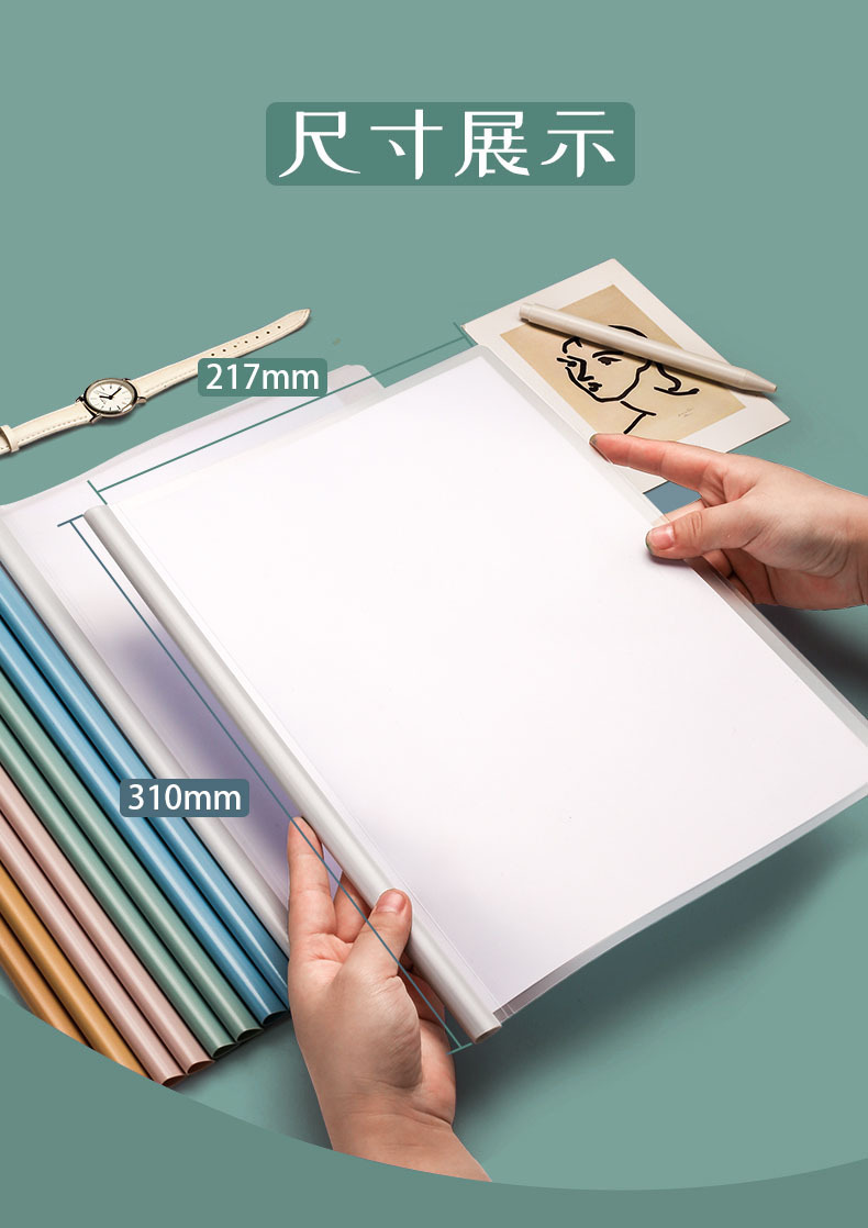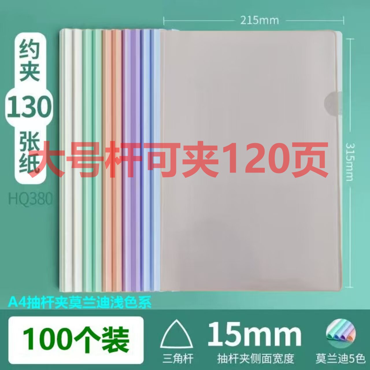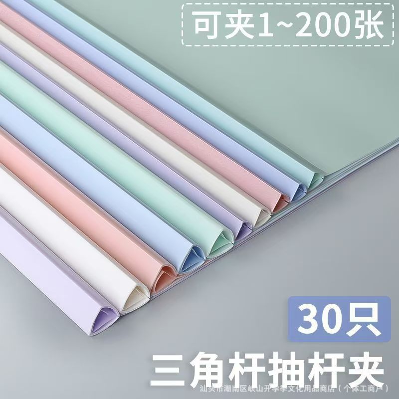 a4抽杆夹水滴形资料夹学生透明试卷夹莫兰迪三角杆插页文件夹