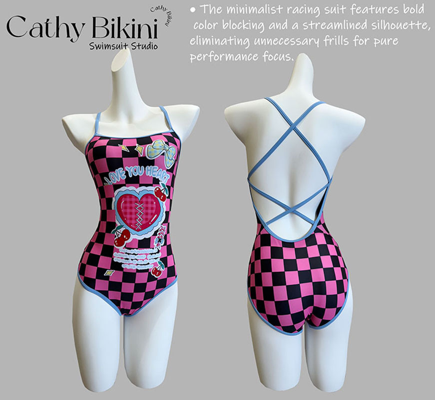 2026新款泳衣女高级感连体三角游泳馆专用甜妹可爱专业竞速游泳衣