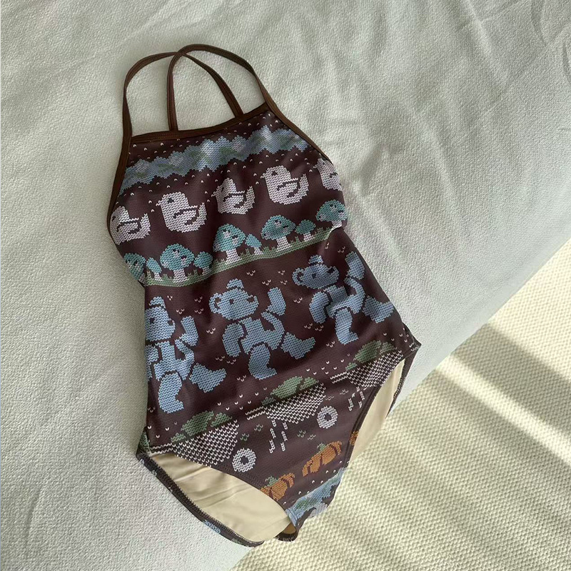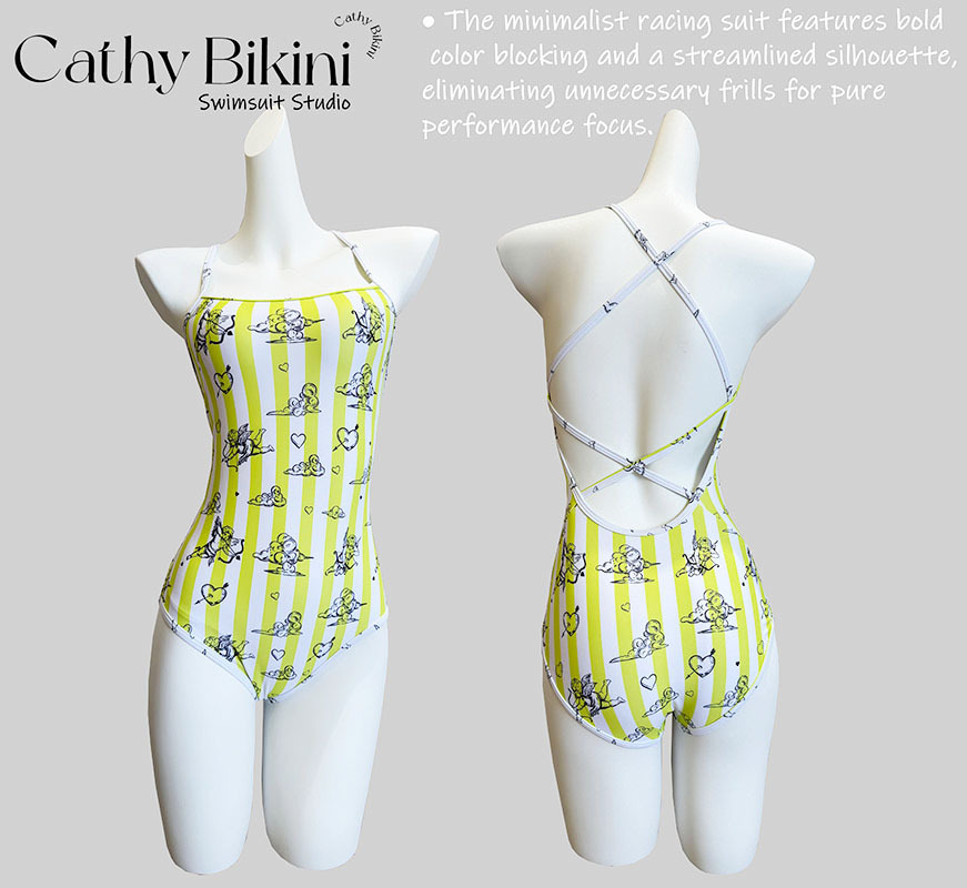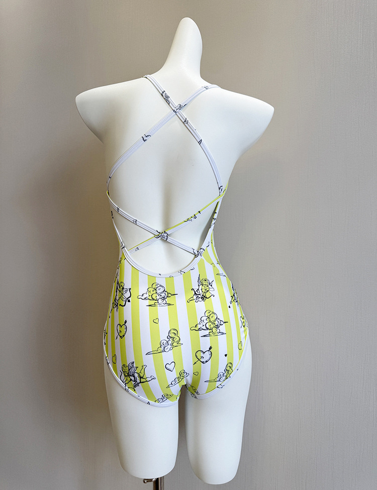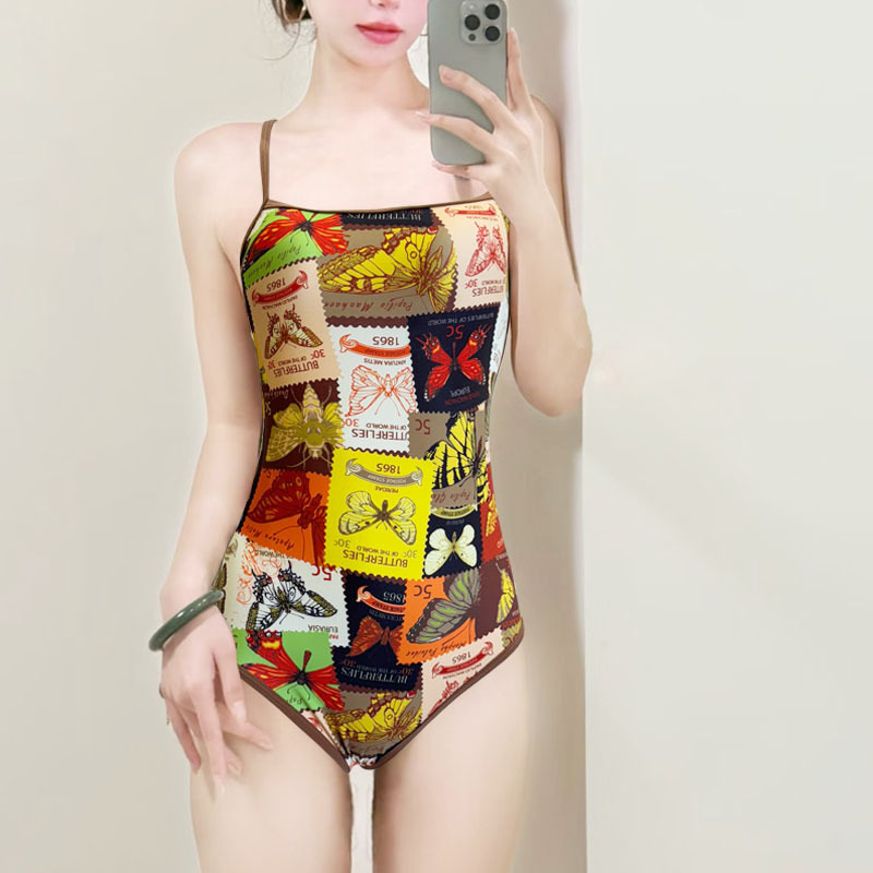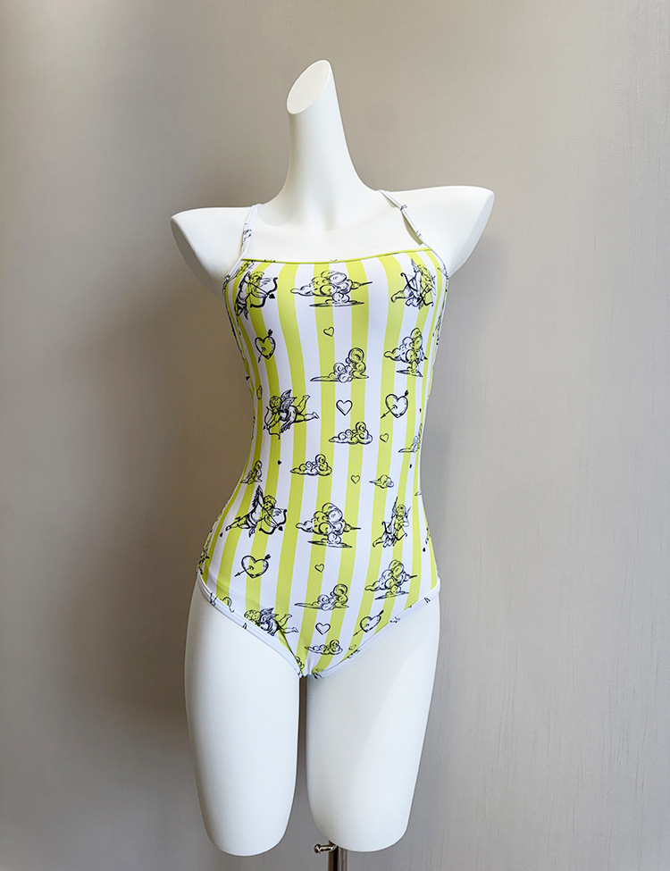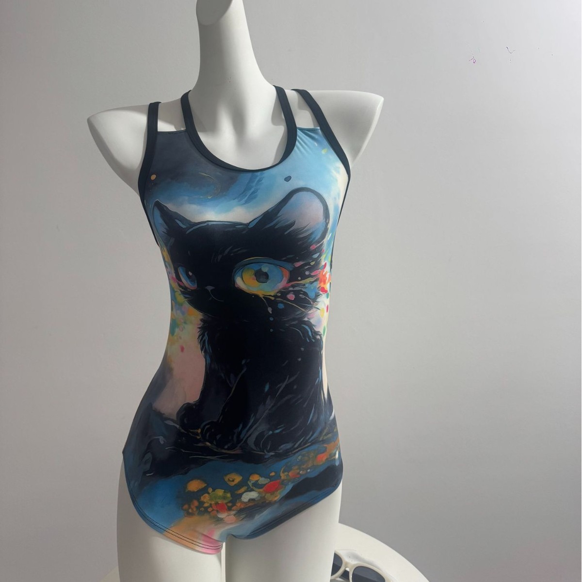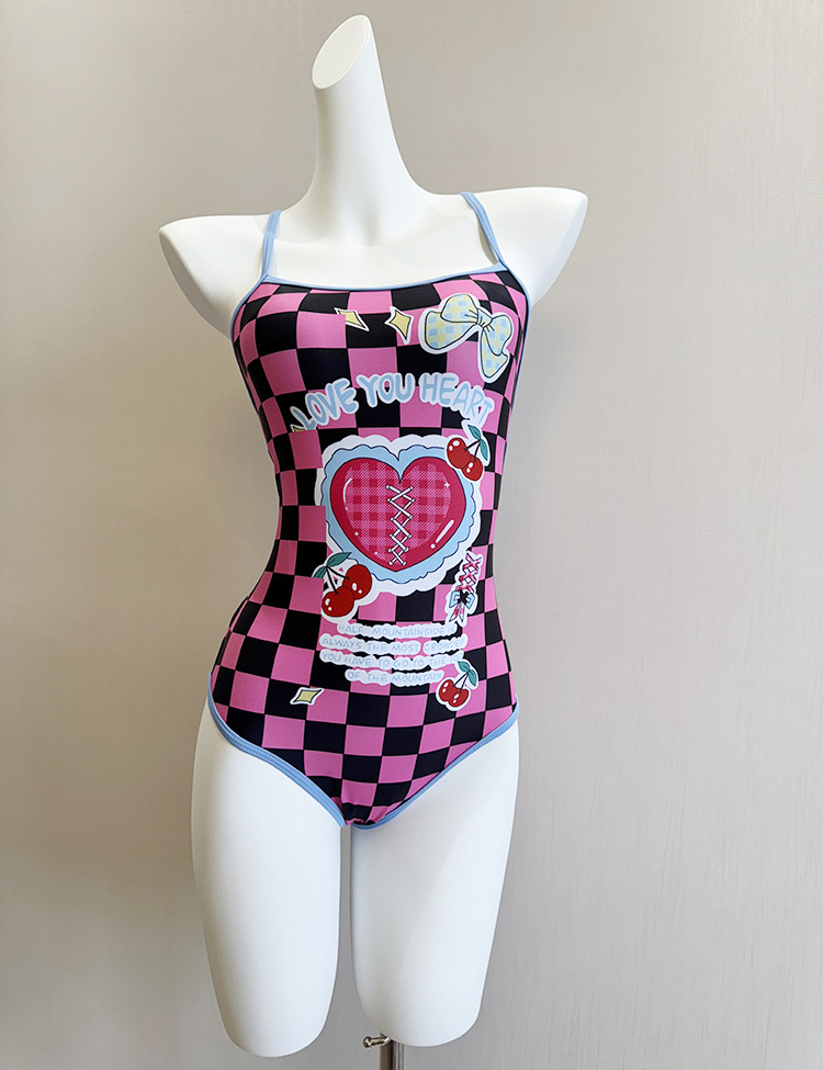 2025 新韓国インスタイルシンプルな漫画プリントプロレーシング温泉水着サーフィンビーチ水着女性