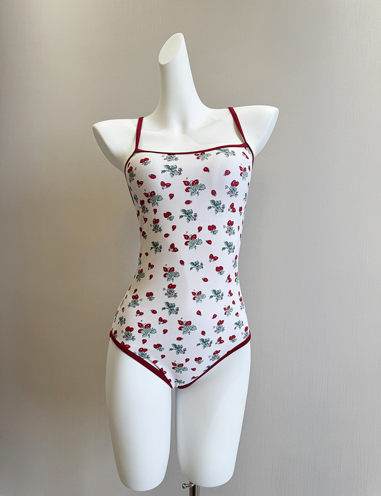 2025 韓国水着女性のスプリットセクシーなプリントビキニ水着イチゴインホリデースリム水着セット