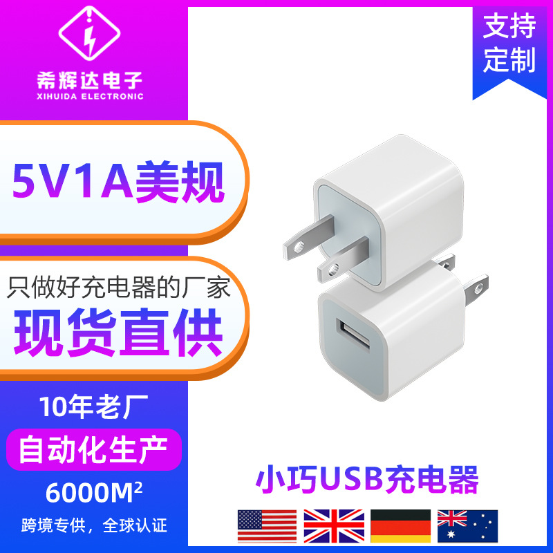 新款5W美规充电头5V1A高品质USB充电器 便携式手机充电插头源厂