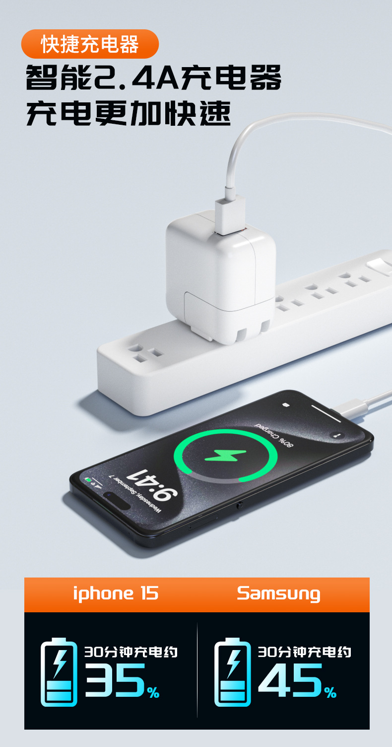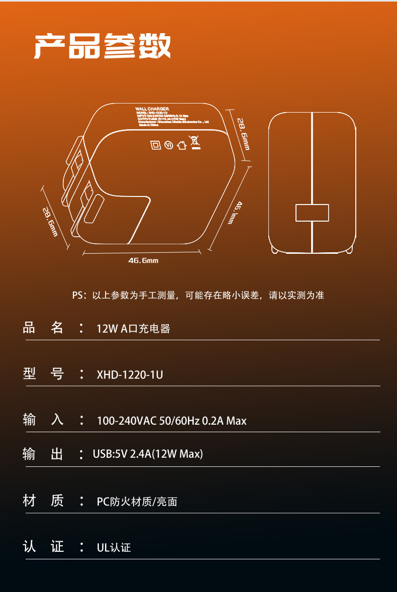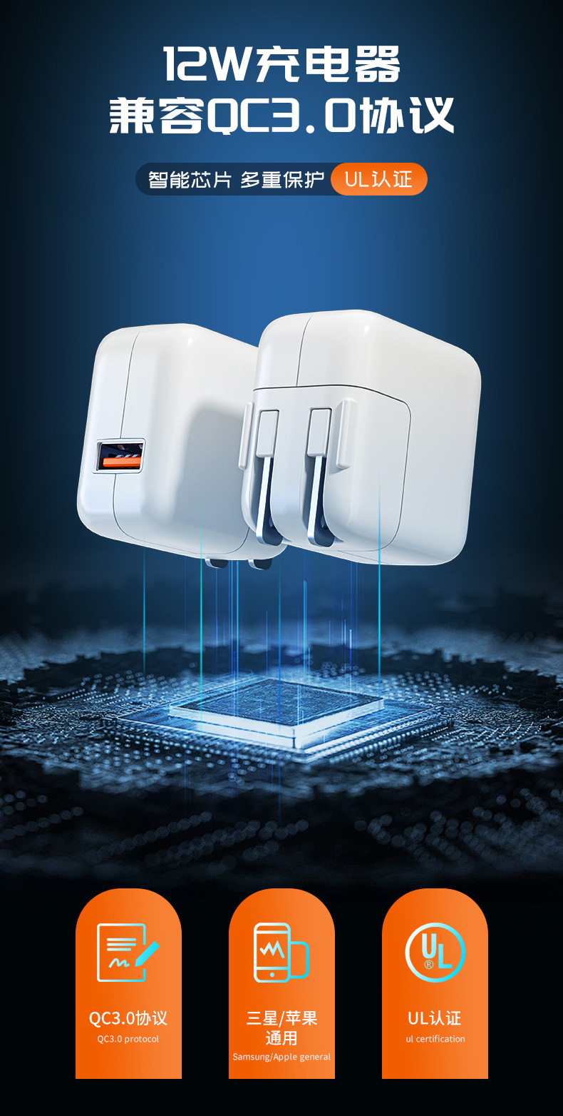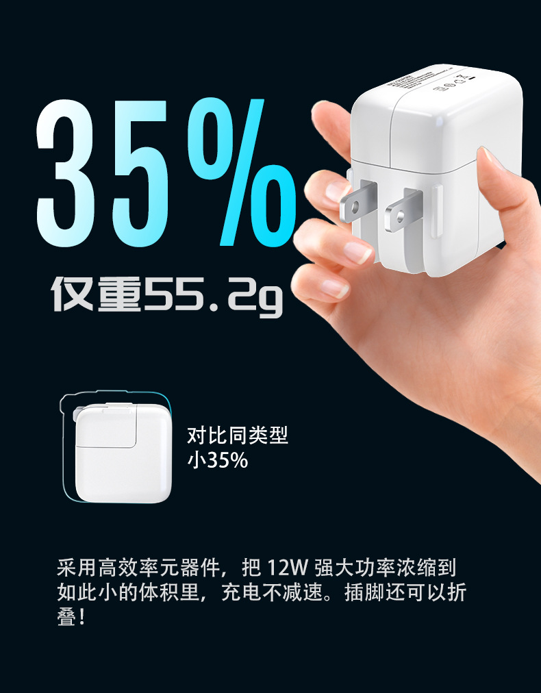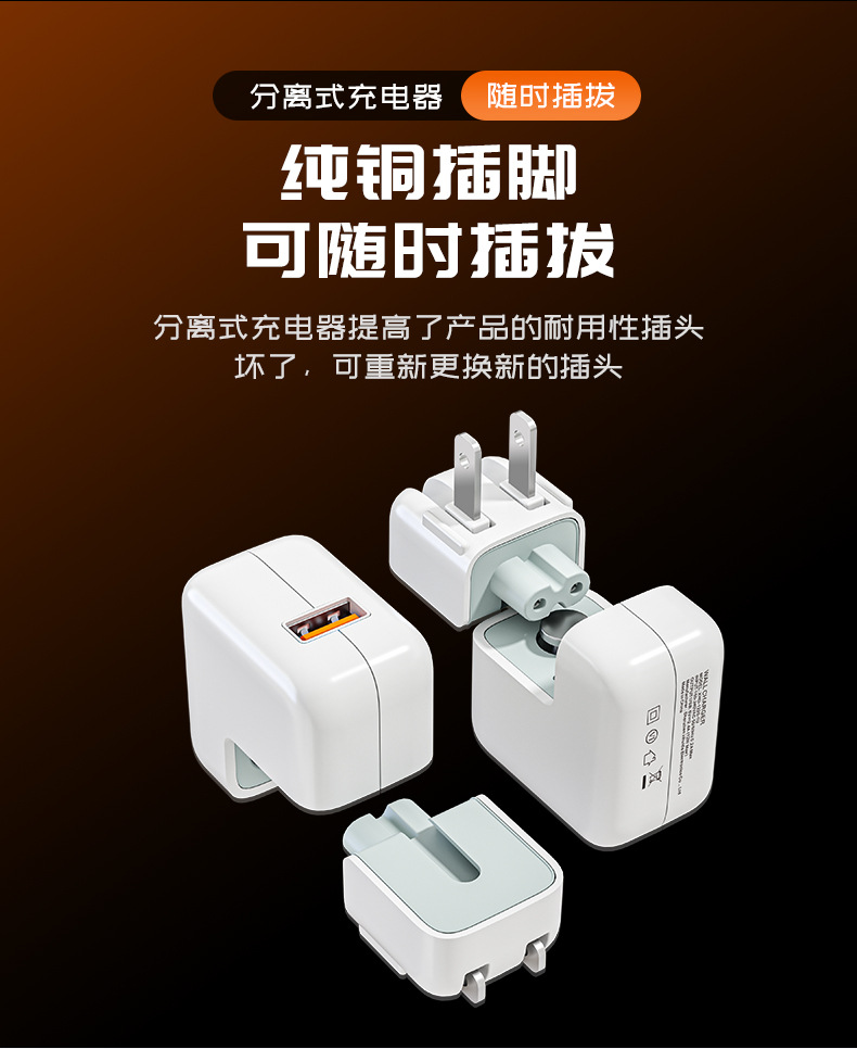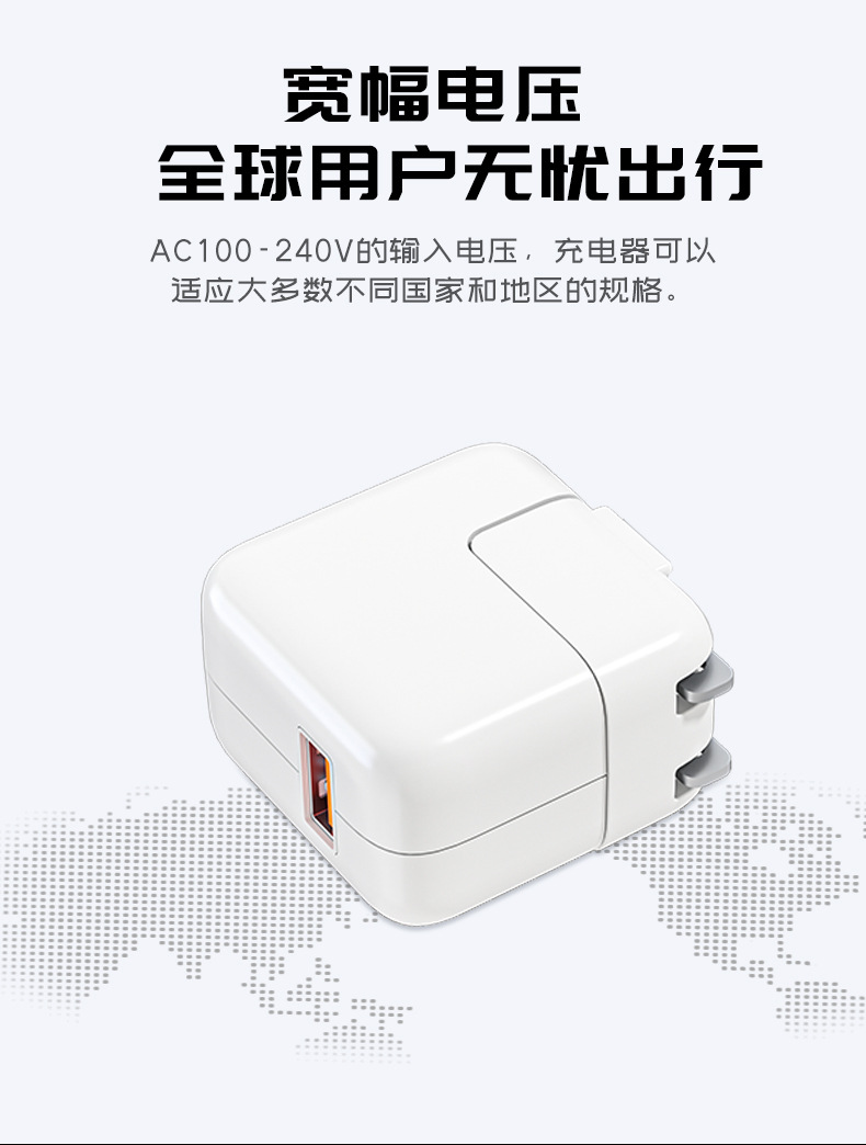新款12W美规充电头USB折叠充电器适用于三星苹果手机充电插头源厂