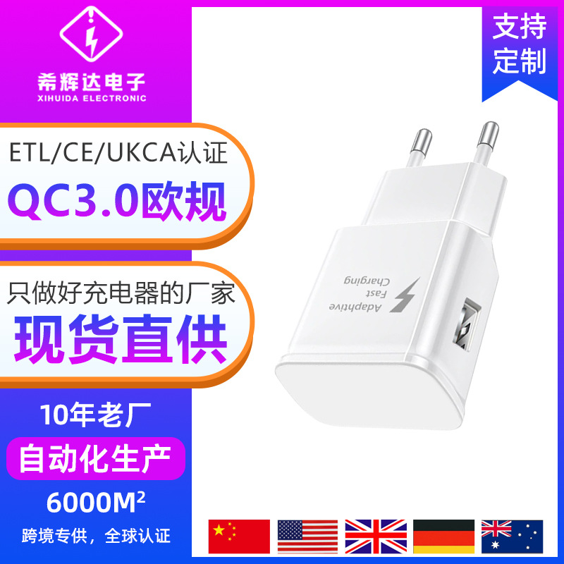 QC18W ヨーロッパ標準急速充電ヘッドサムスン充電器 S7S8S9 Apple 15 急速充電 USB プラグソースメーカー