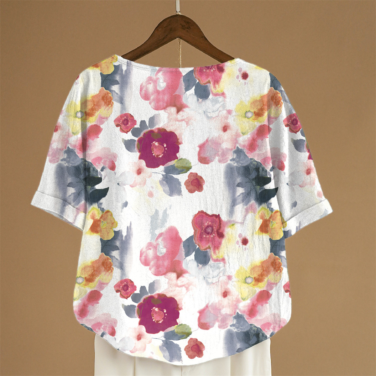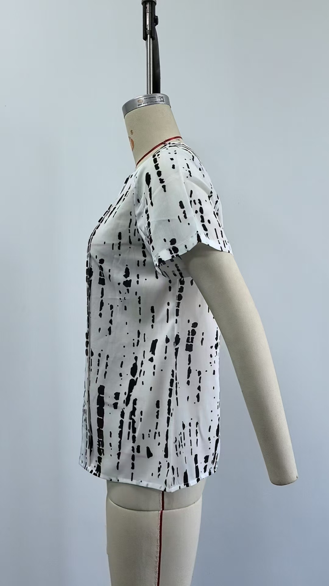 亚马逊跨境欧美外贸2025新款夏季印花衬衫文艺宽松短袖时尚上衣女