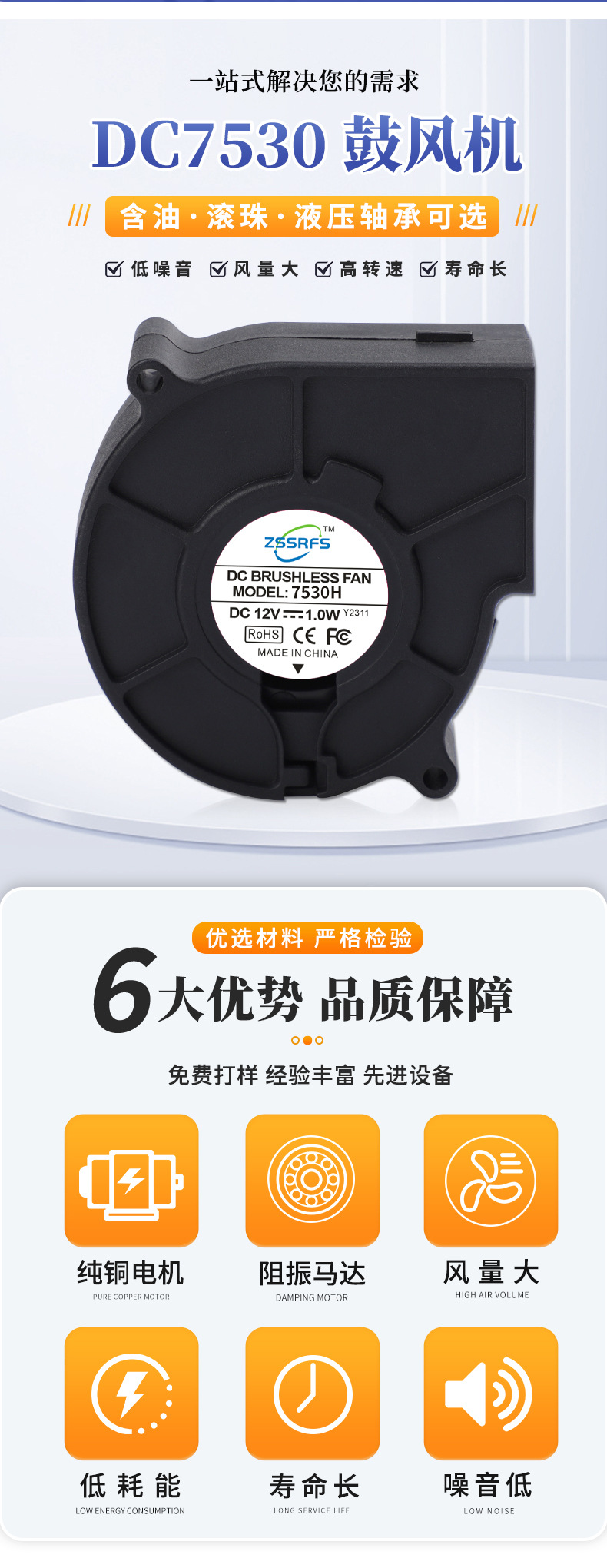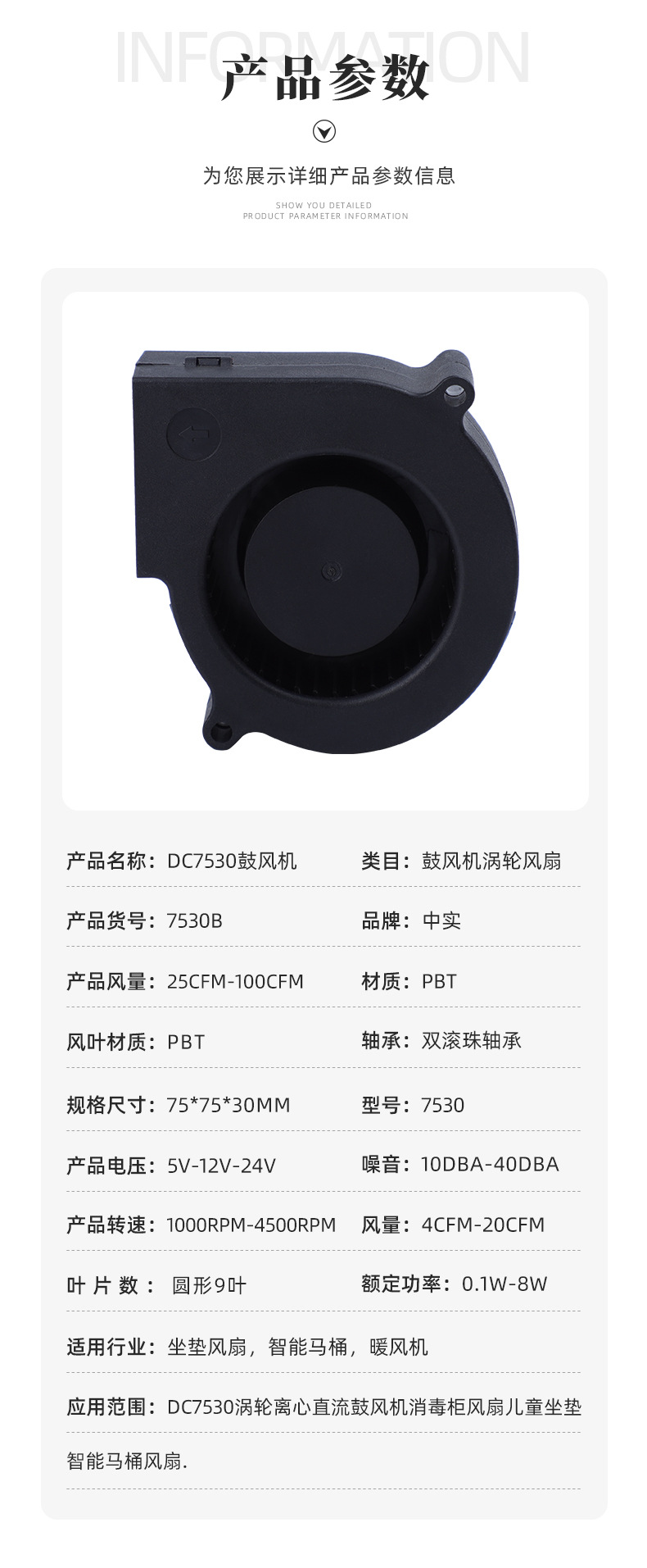 定制dc7530涡轮鼓风机离心直流风扇大风量消毒柜智能马桶散热风扇