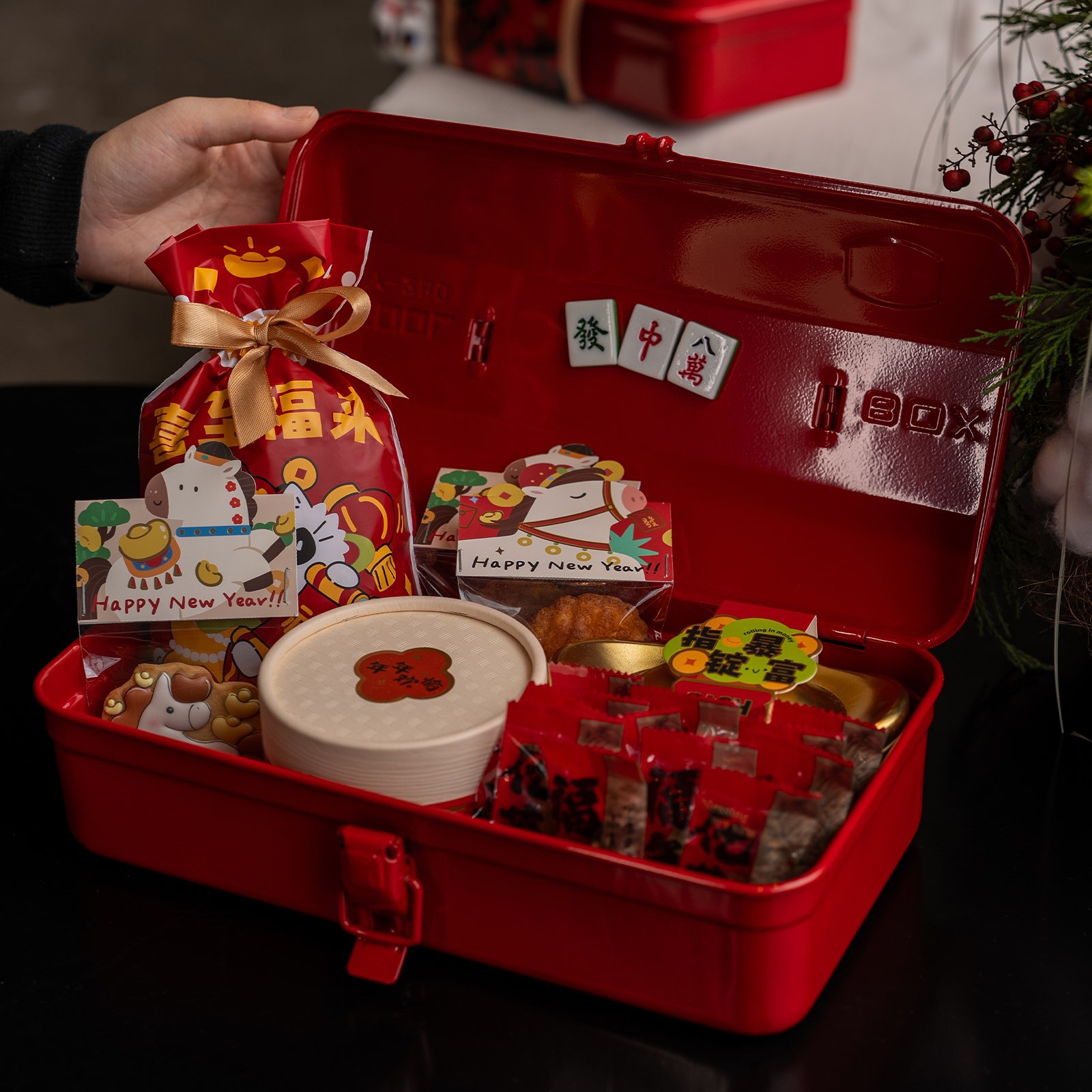 简约手绘红色包装盒烘焙饼干糖果手提盒春节新年礼物伴手礼品盒子