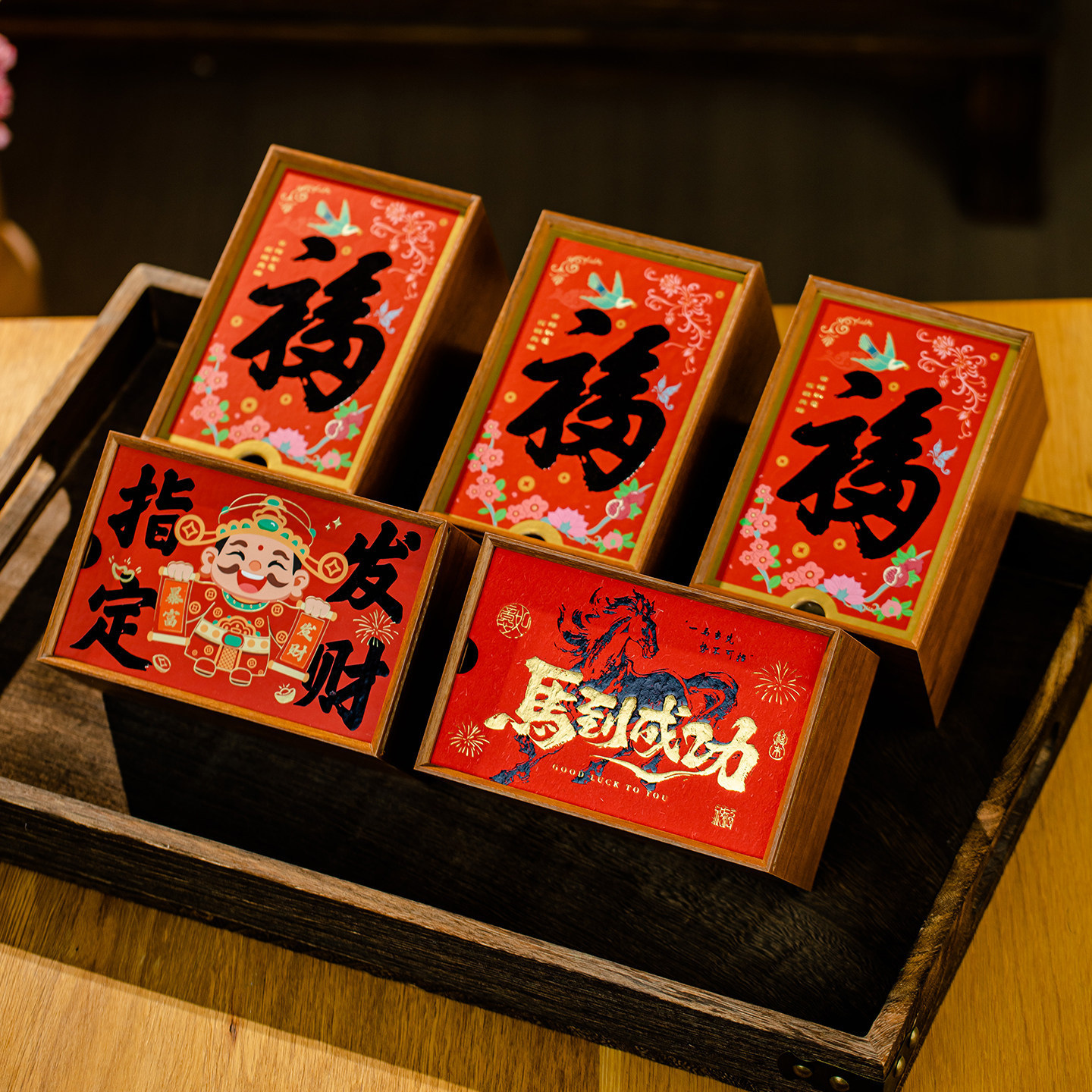 2026新年礼盒包装盒饼干坚果糖年货零食糕点马年中式木小礼品盒空