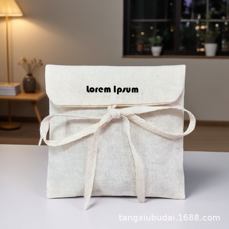 定制高端绑带棉布信封袋珠宝首饰防尘包装袋衣服包包棉麻布翻盖袋
