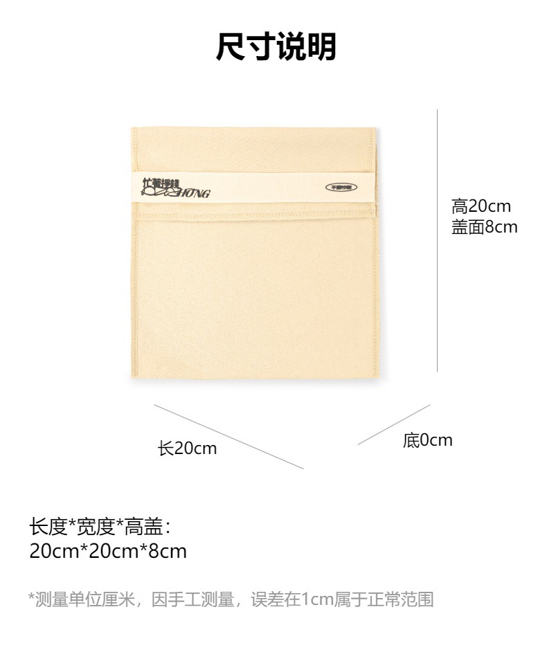 规格型号 20*20*8cm(空白);米杏色;斜纹磨毛棉布,15*15*12(带印刷);米杏色;斜纹磨毛棉布