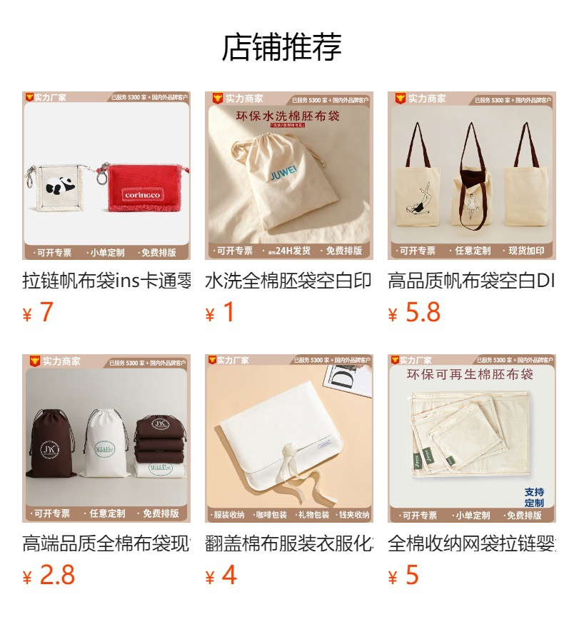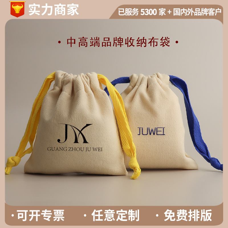 唐秀布袋棉坯布料现货LOGO棉布袋绑绳信封袋耳钉戒指项链收纳袋子