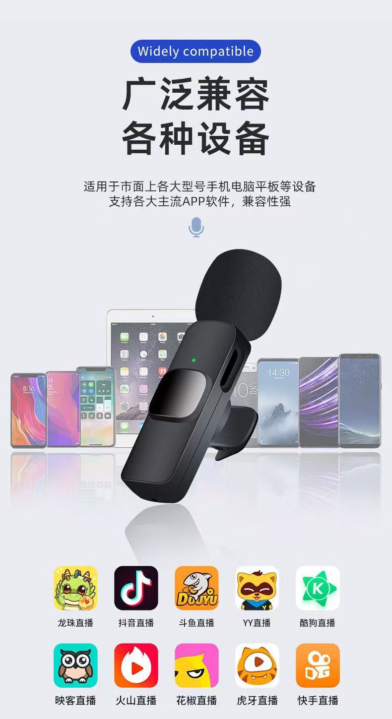 K8无线领夹麦克风收音直播录音降噪户外迷你话筒跨境耳机电商