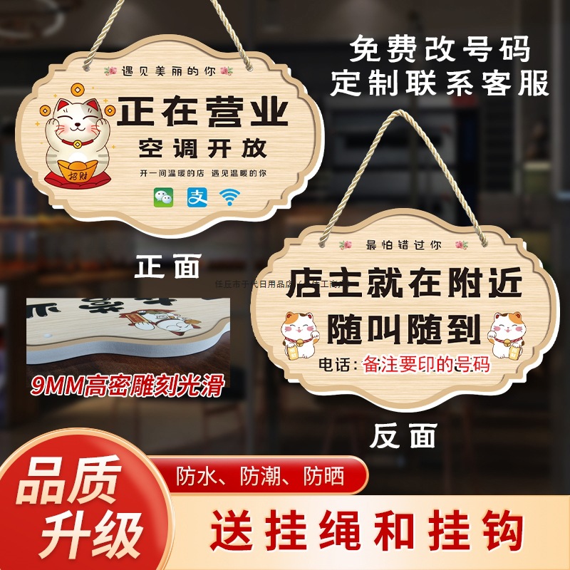 営業中、空調開放中、休憩中、外出中、すぐに戻ってきます、店舗掲示板のヒント