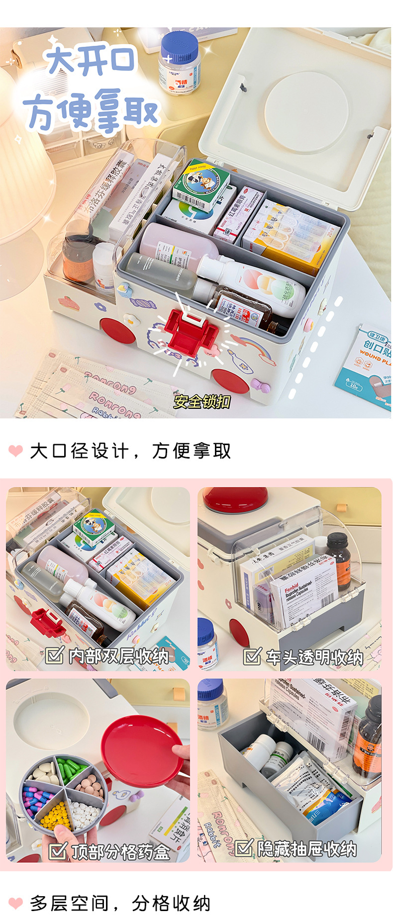 家庭用収納ボックス かわいい薬収納ボックス 子供用デスクトップ薬箱 赤ちゃん薬箱 薬箱 ファミリーパック