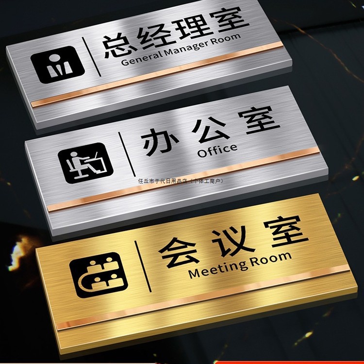 ステンレス製オフィスドアサイン ブラッシュド会社部門サイン 社長会議財務部サイン