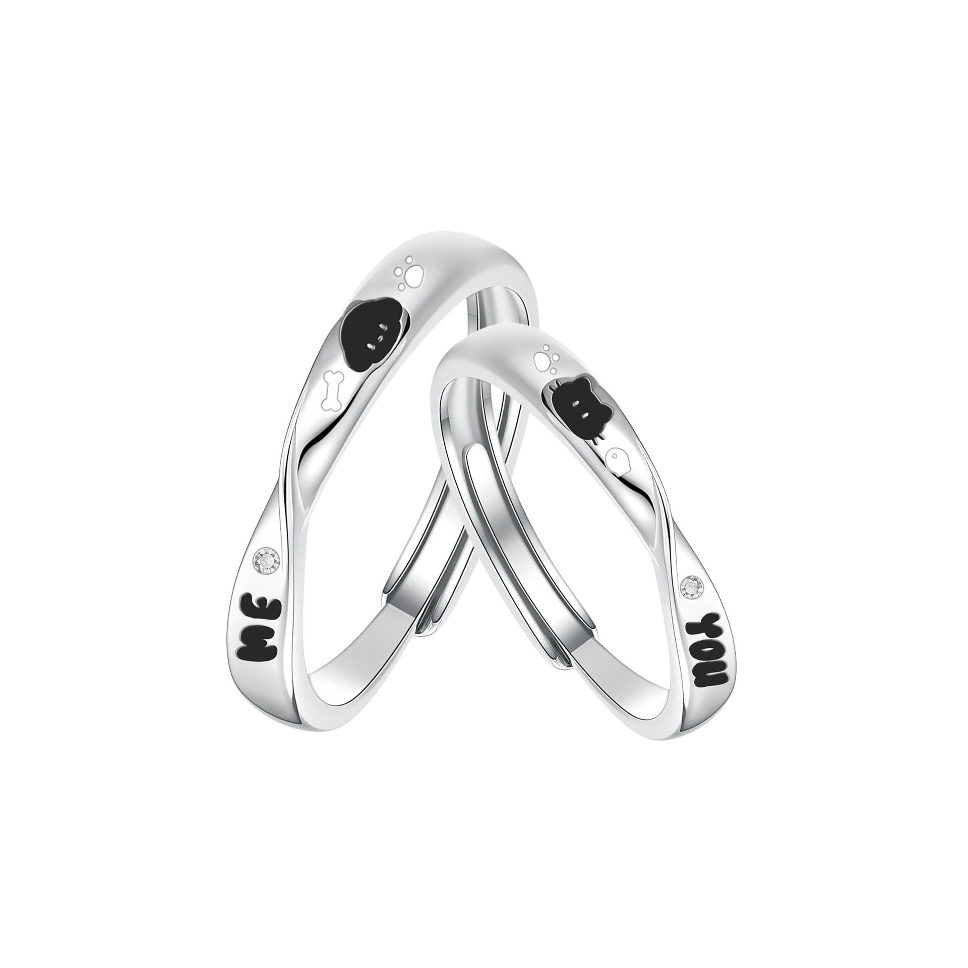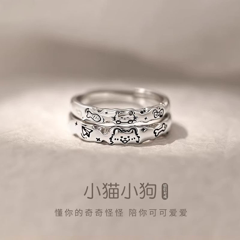 925纯银卡通猫狗情侣戒指小众百搭高级感对戒圣诞节礼物送女友潮