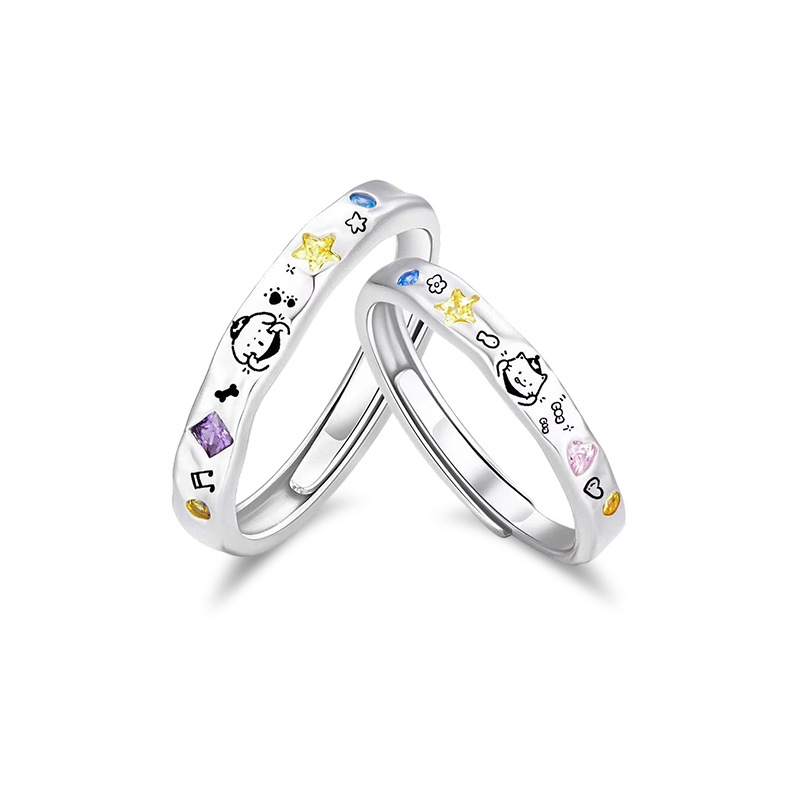 s999 スターリングシルバーオリジナルかわいい猫と犬の日記ペアリング森系甘い調節可能なリングハイエンドリング卸売