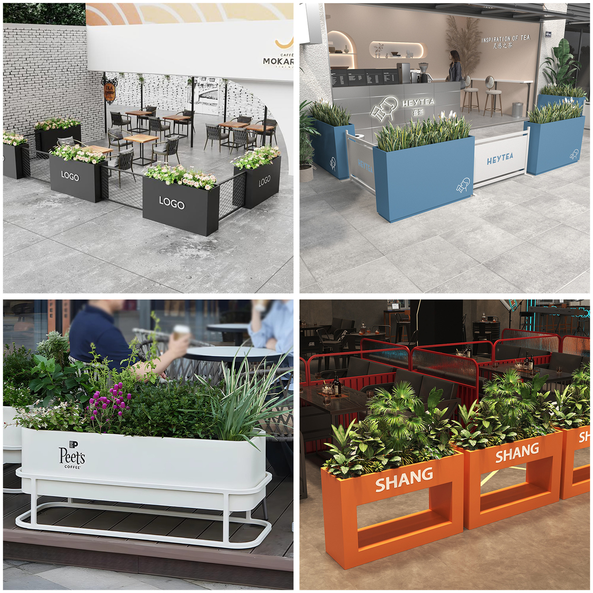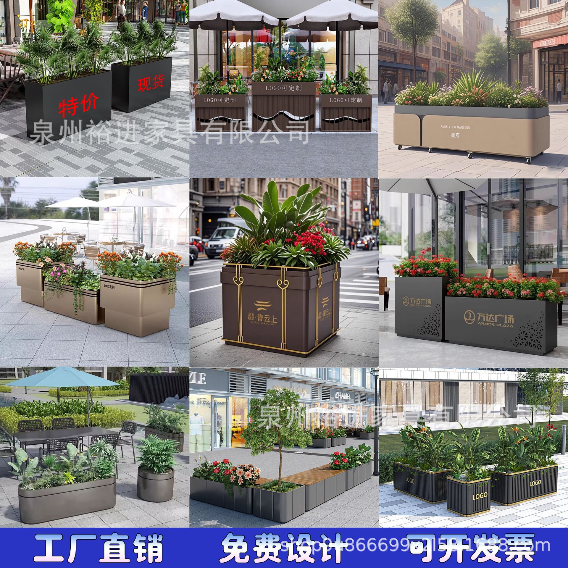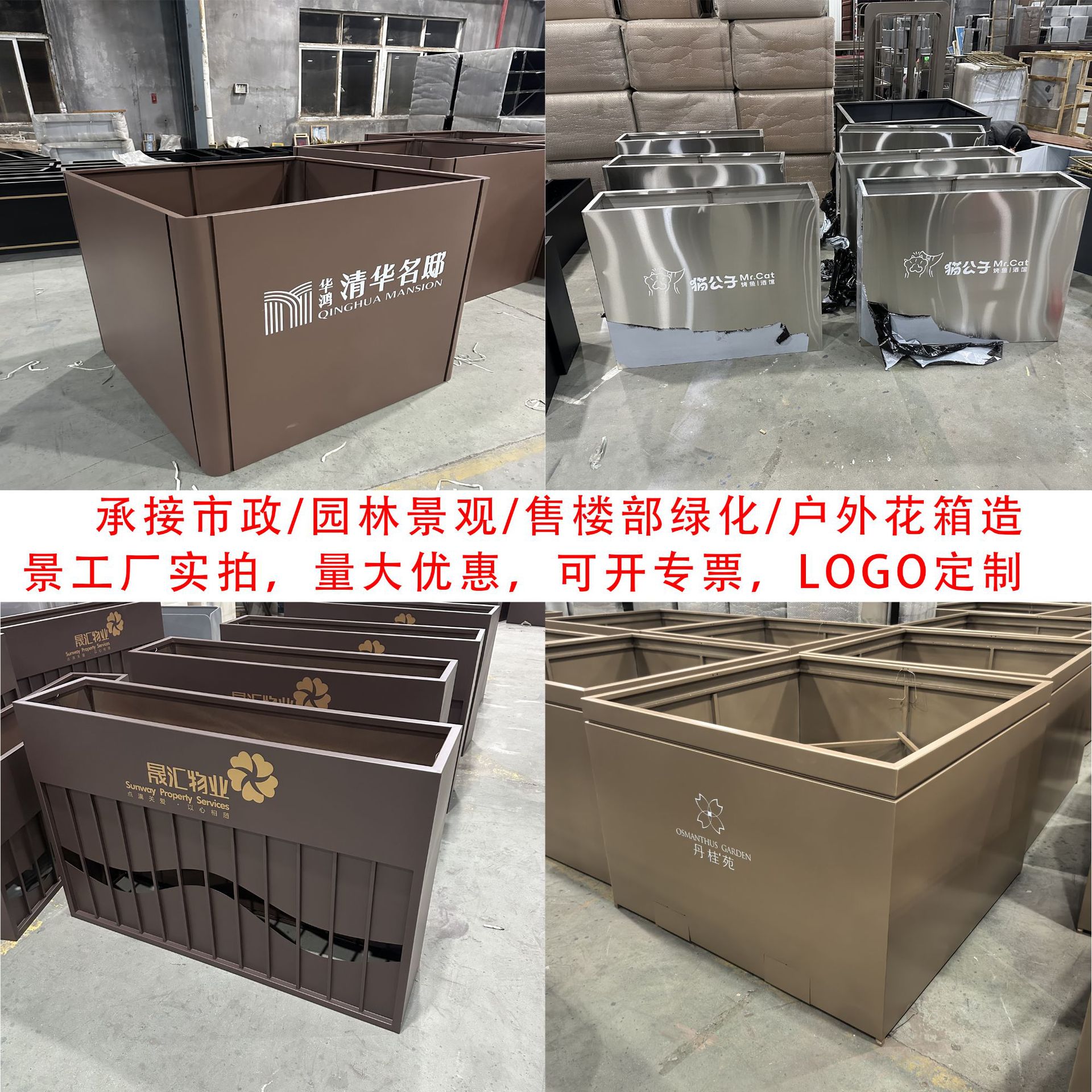 户外不锈钢花箱铁艺花槽商业街市政围栏售楼部种植箱外摆组合花坛