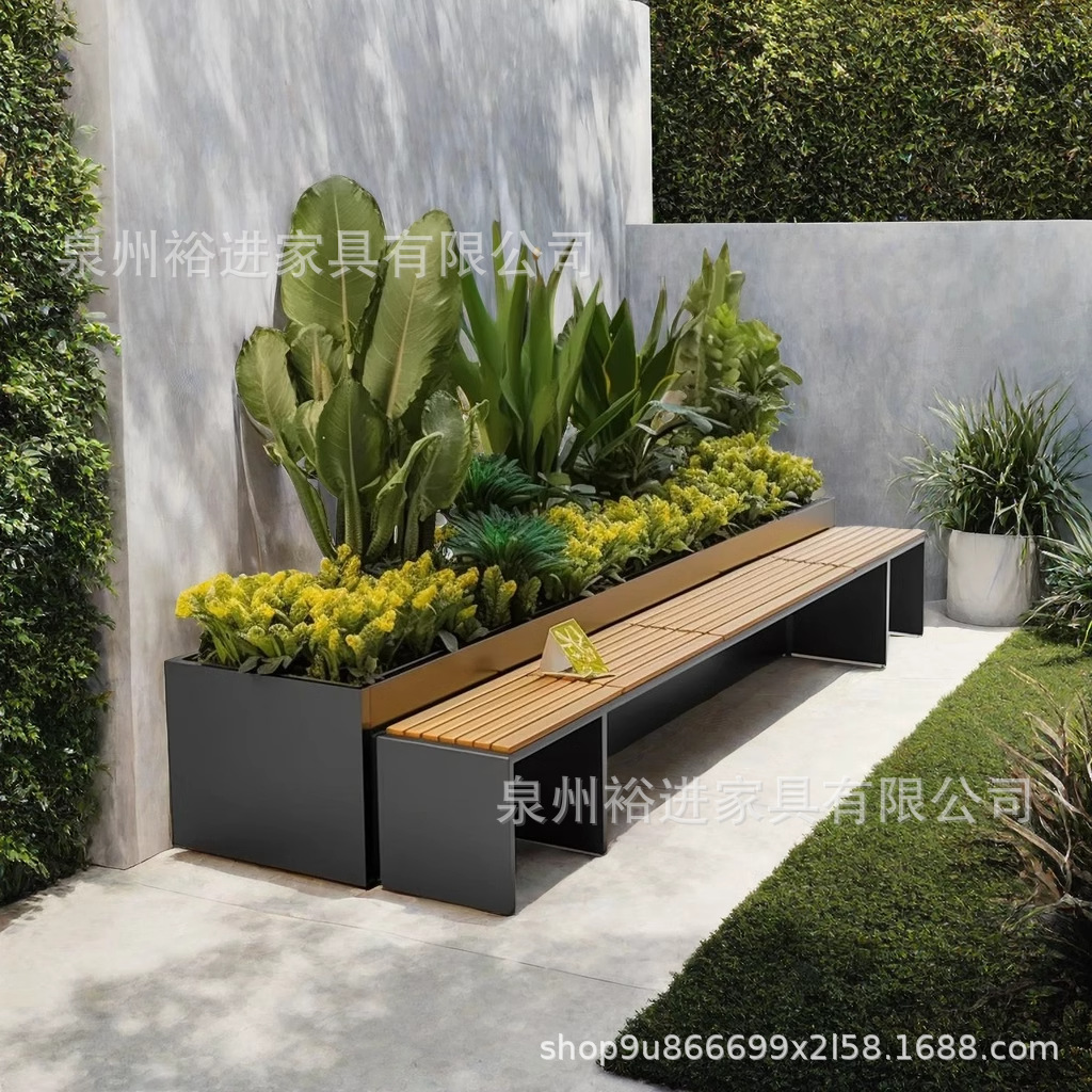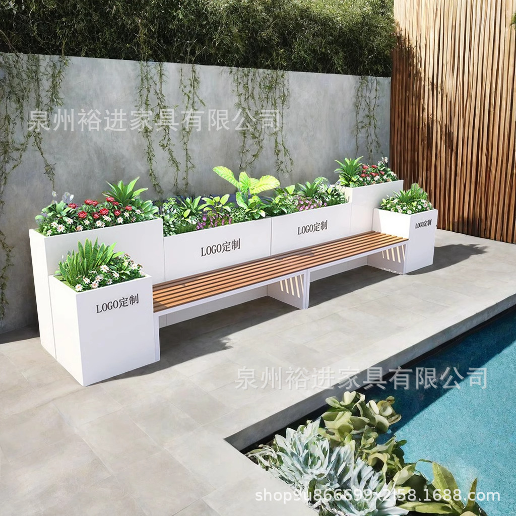户外座椅坐凳花箱休息座椅花园长凳阳台种植箱不锈钢花箱铁艺花架