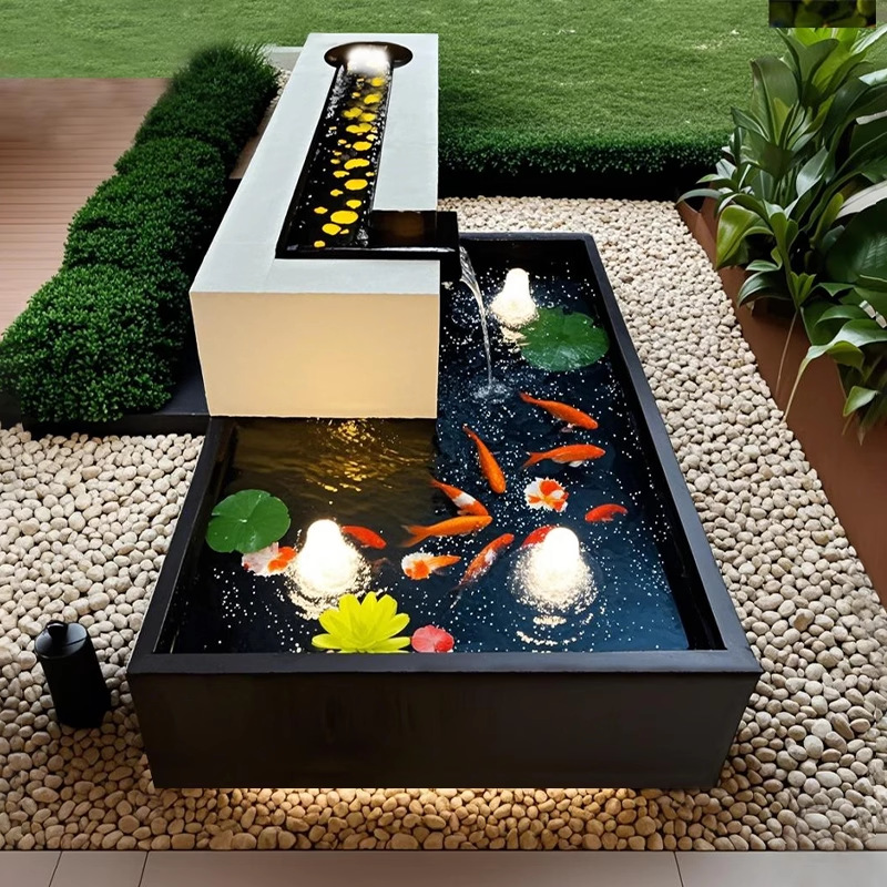 户外不锈钢成品鱼池景观摆件造景鱼缸自循环水景庭院种植流水花箱