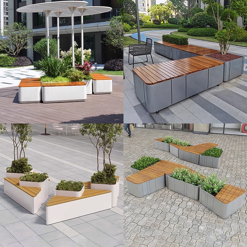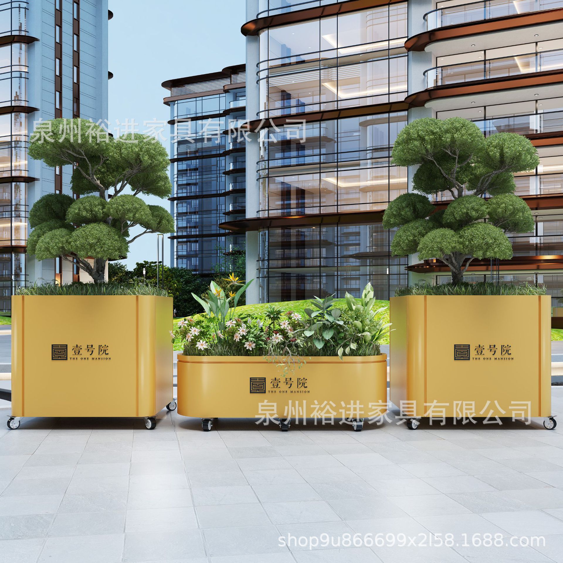 屋外ステンレス鋼フラワーボックス組み合わせ商業街花壇営業部モバイルツリーパークガーデン風景市花ボックス