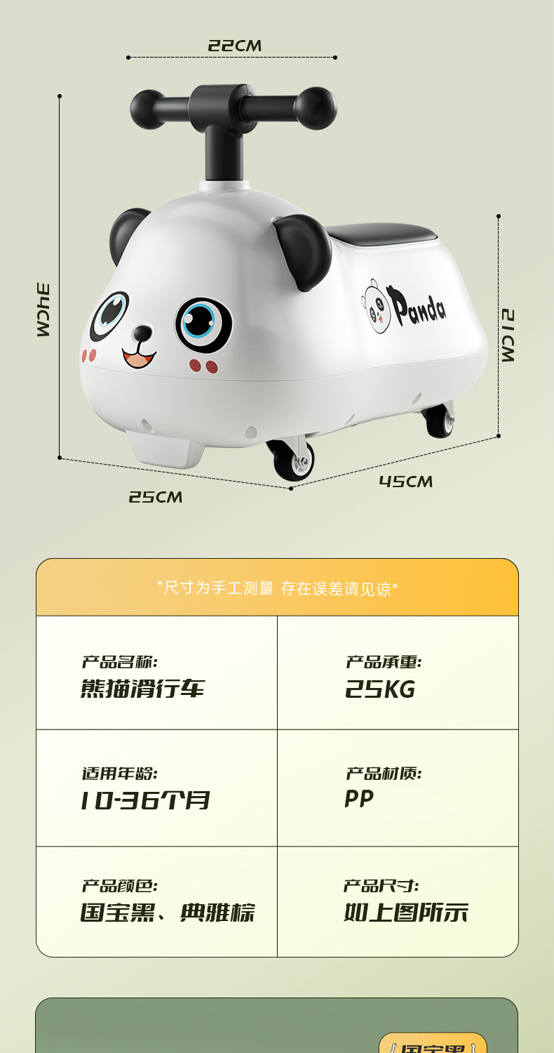 货号 小兵将熊猫扭扭车-包邮