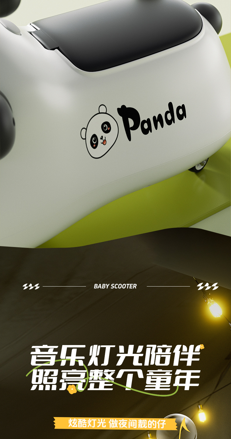 颜色 【黑+白色】熊猫滑行车-音乐灯光+牵引绳+螺丝刀+三节5号电池,【白+卡其色】熊猫滑行车-音乐灯光+牵引绳+螺丝刀+三节5号电池