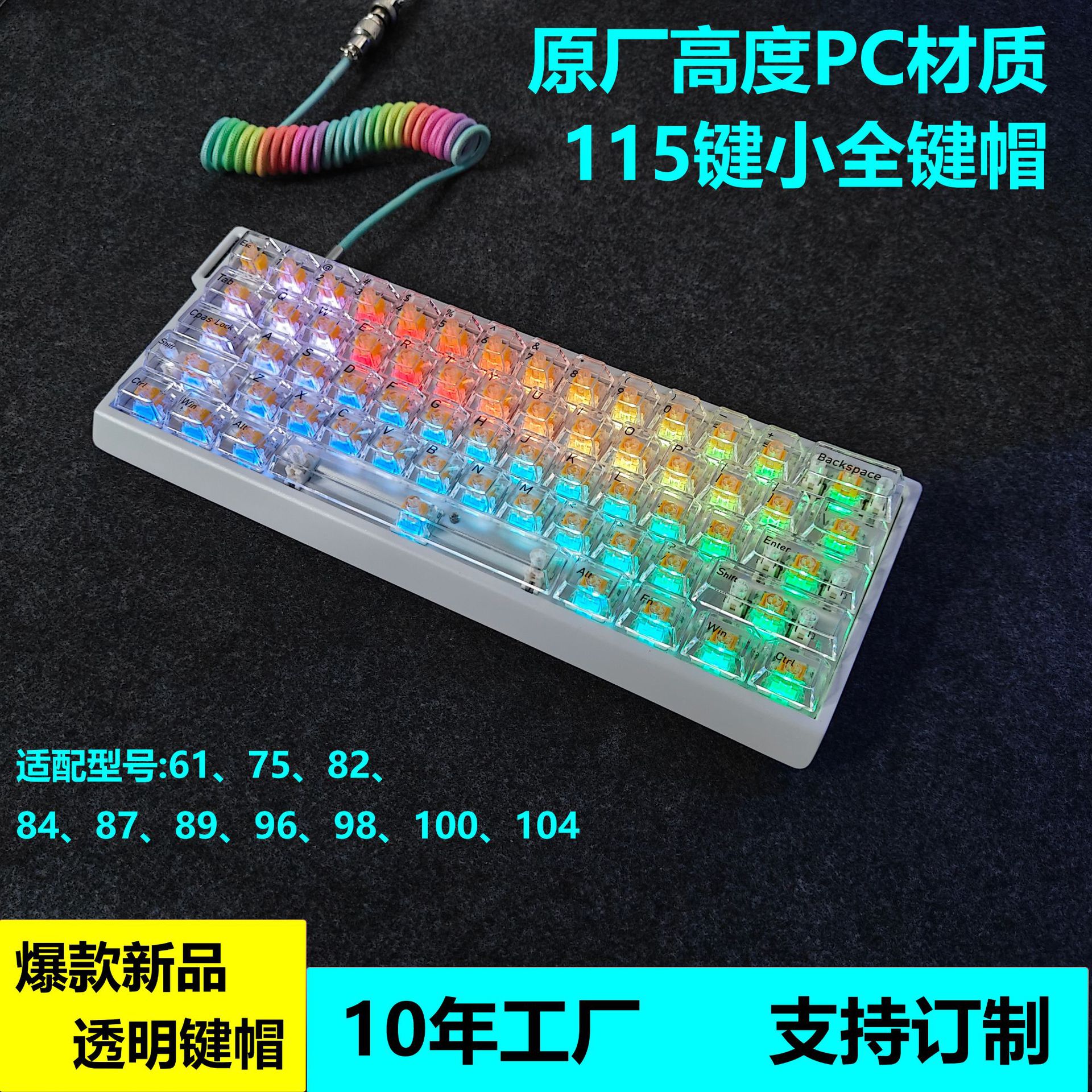 透明透光キーキャップ 115キー カスタムメイド オリジナル高さ MDA 高品質 クロス軸 マット透明キーキャップ