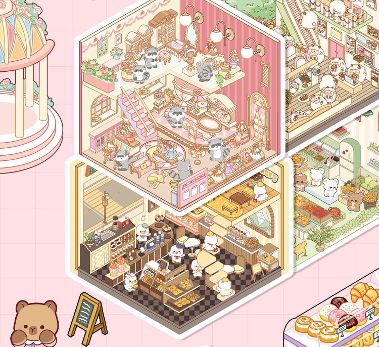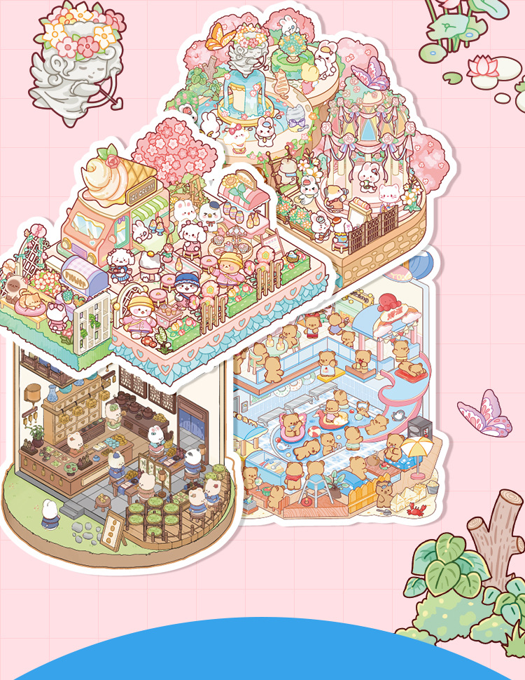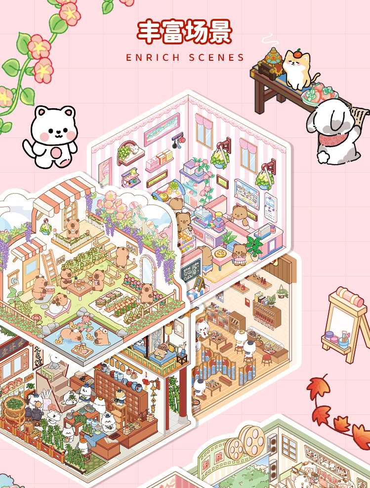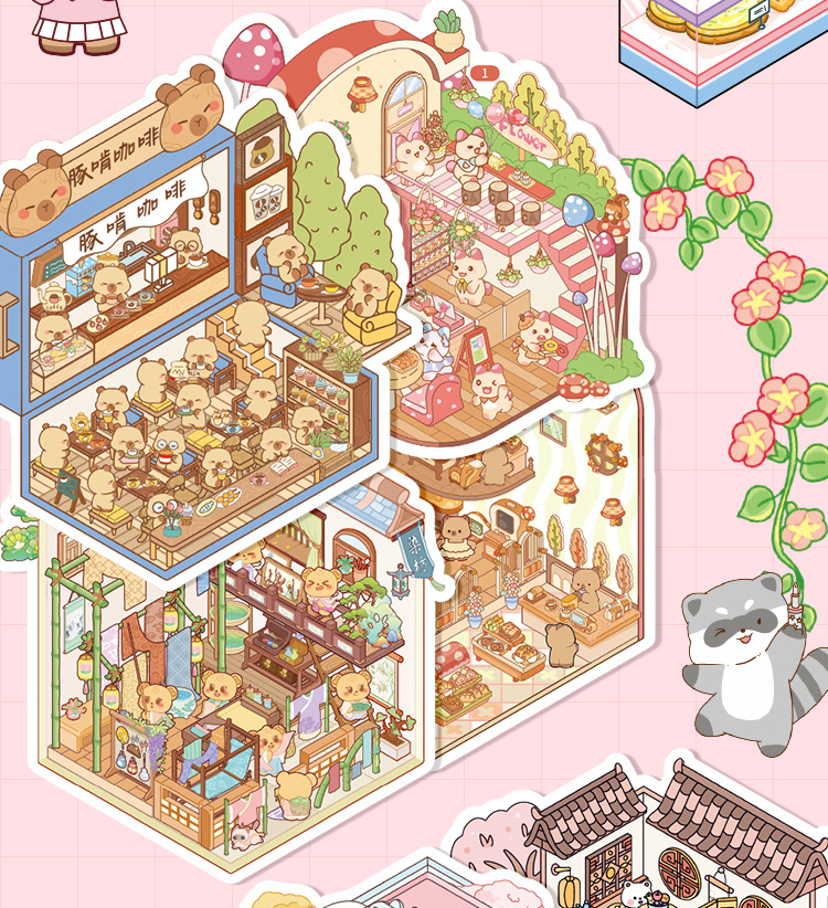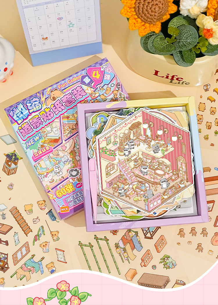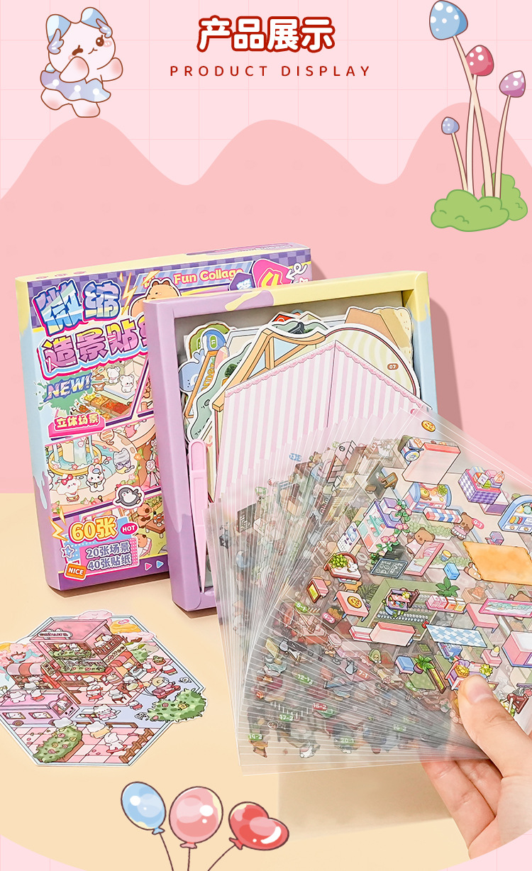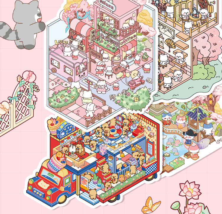 オリジナルミニチュア造園ステッカーセットビジュアルスタッキング3D立体シミュレーションシーン毎日カット不要のステッカーブック