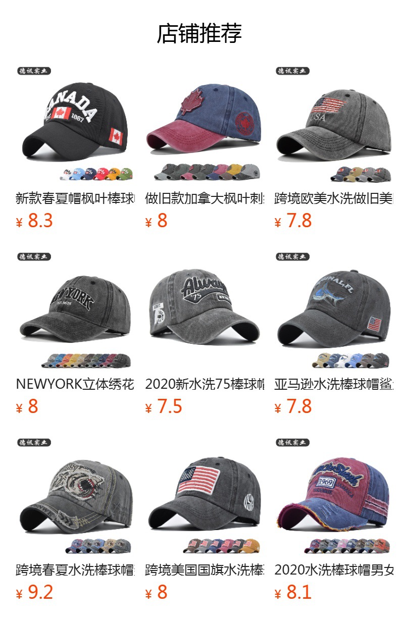 【产品名称】:复古绣花棒球帽&鸭舌帽