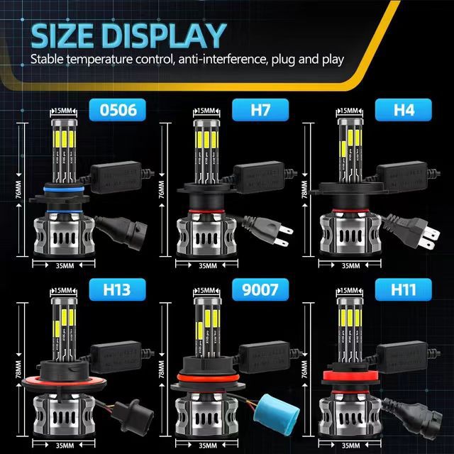 360led大灯泡车灯前大灯转向灯大功率70W改装配件H1H4H7高亮度