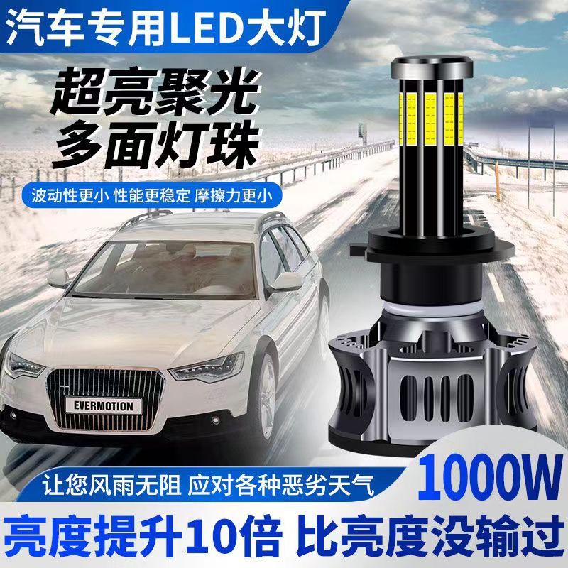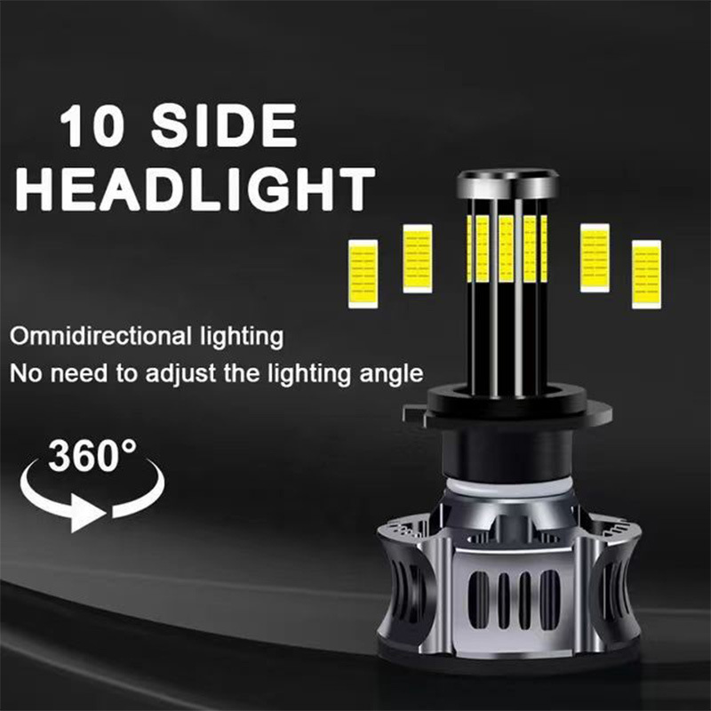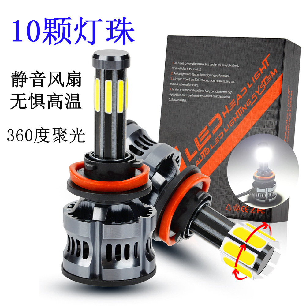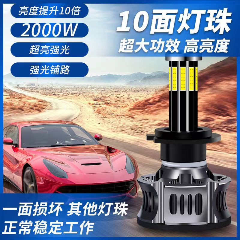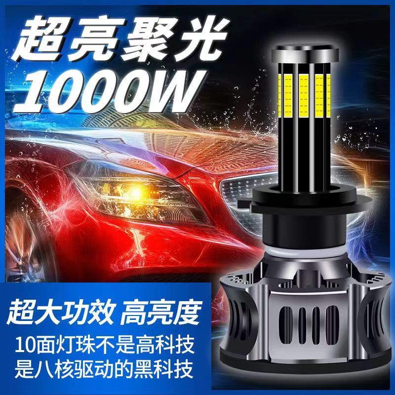 360度汽车led大灯H1H7前照灯10面灯珠H4远近一体激光超亮大灯9005