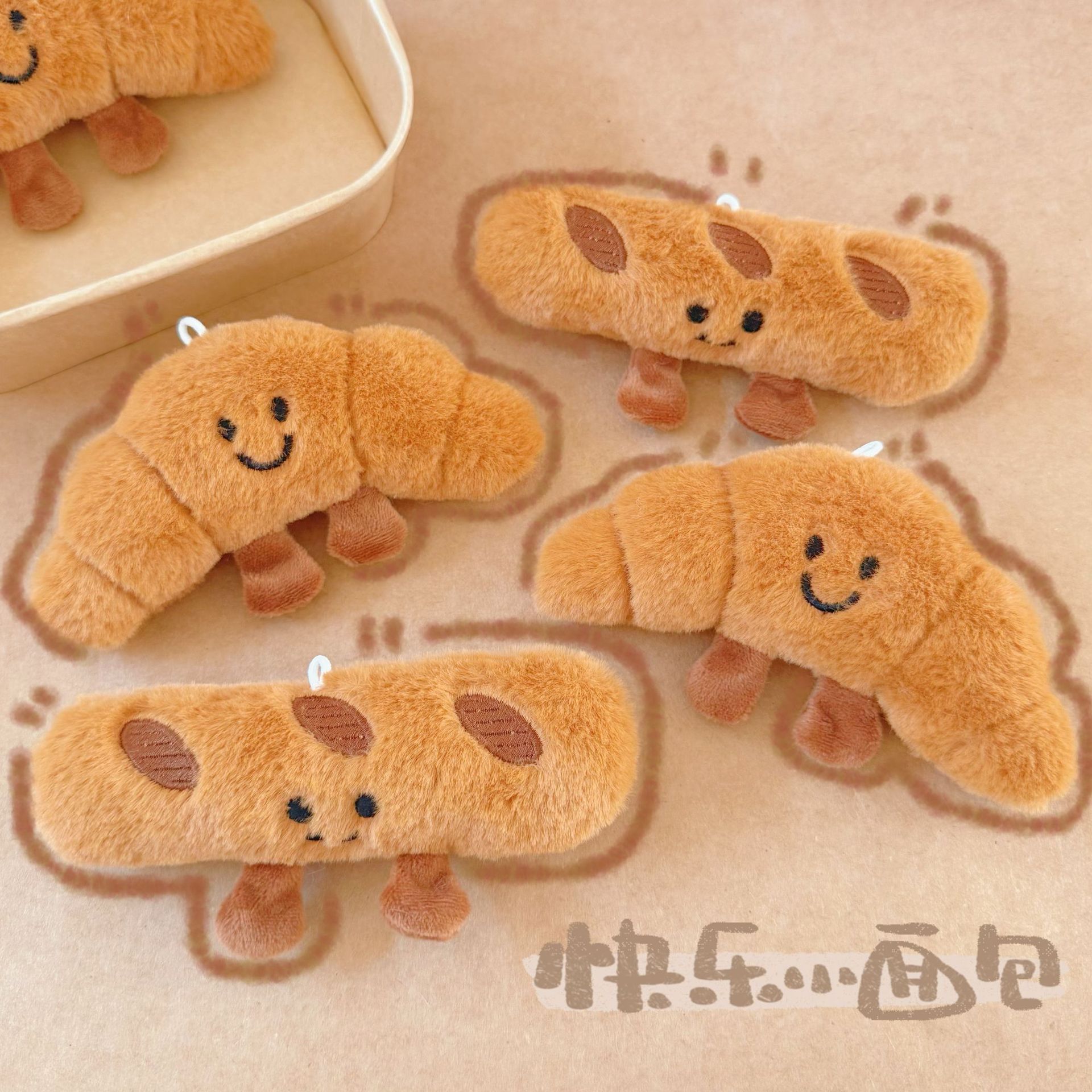 可爱萌法式法棍毛绒面包条玩偶可颂牛角包公仔钥匙扣挂件书包挂饰