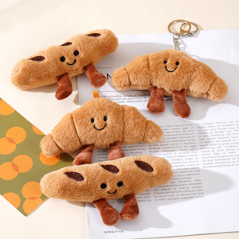 网红牛角包法棍钥匙扣挂件创意美食毛绒公仔法棍面包书包挂饰批发