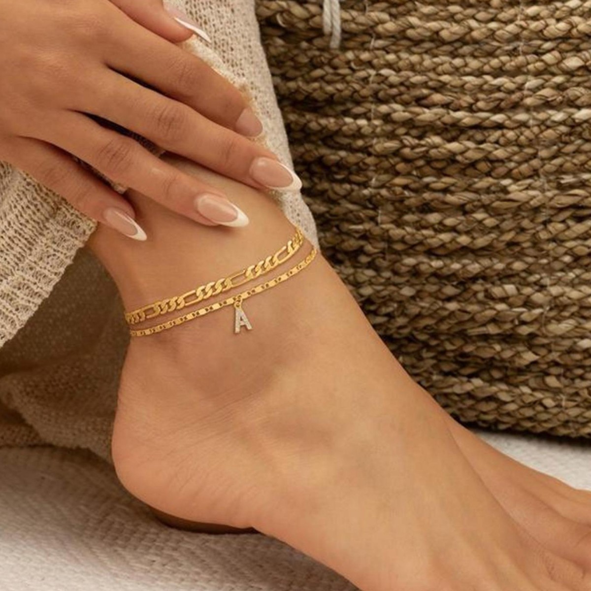 Amazon 新しい英語 26 文字象嵌ジルコンペンダント足 NK チェーン二層アンクレットビーチ休暇アクセサリー