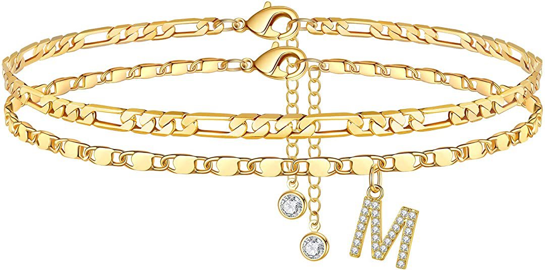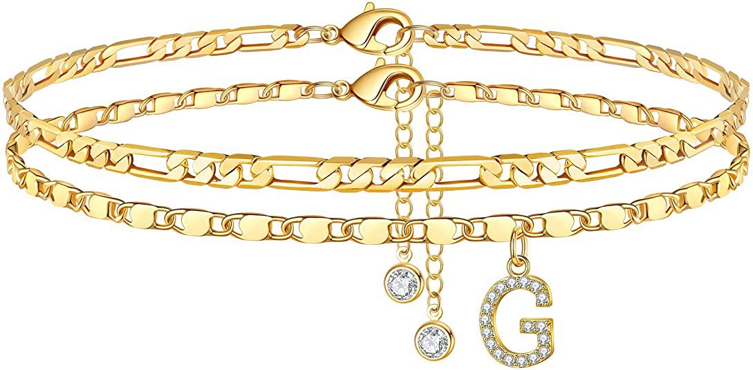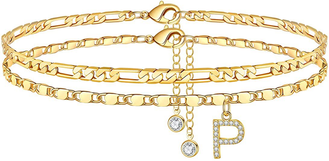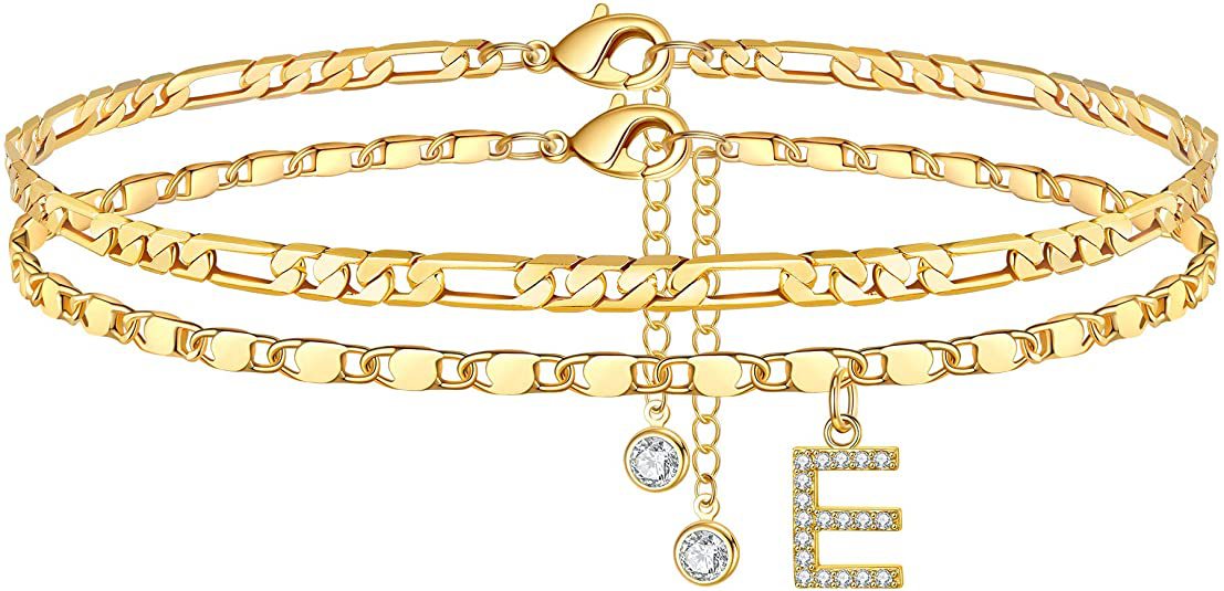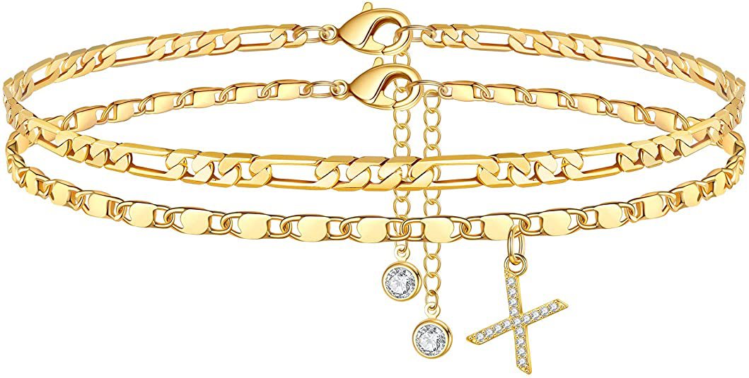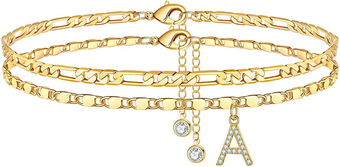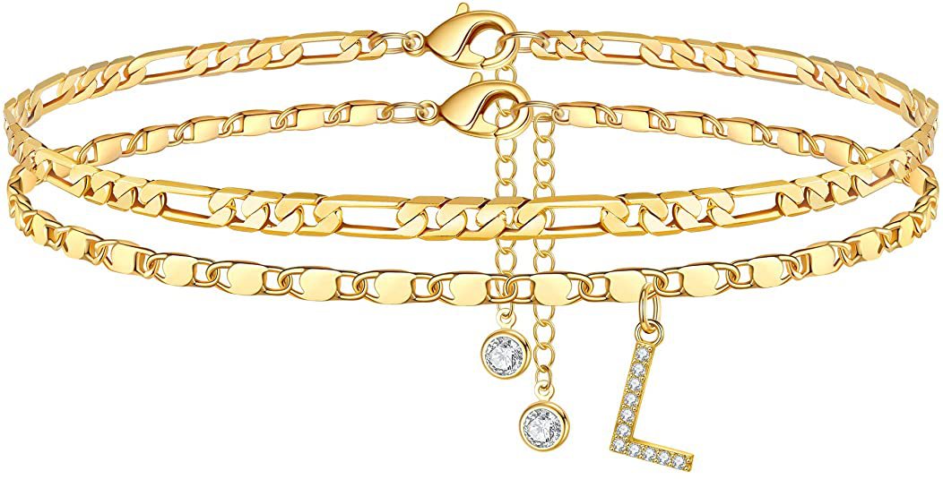 国境を越えた対外貿易14k金メッキの洗練された階層フィガロ鎖cz頭文字脚鎖セット夏プレゼント