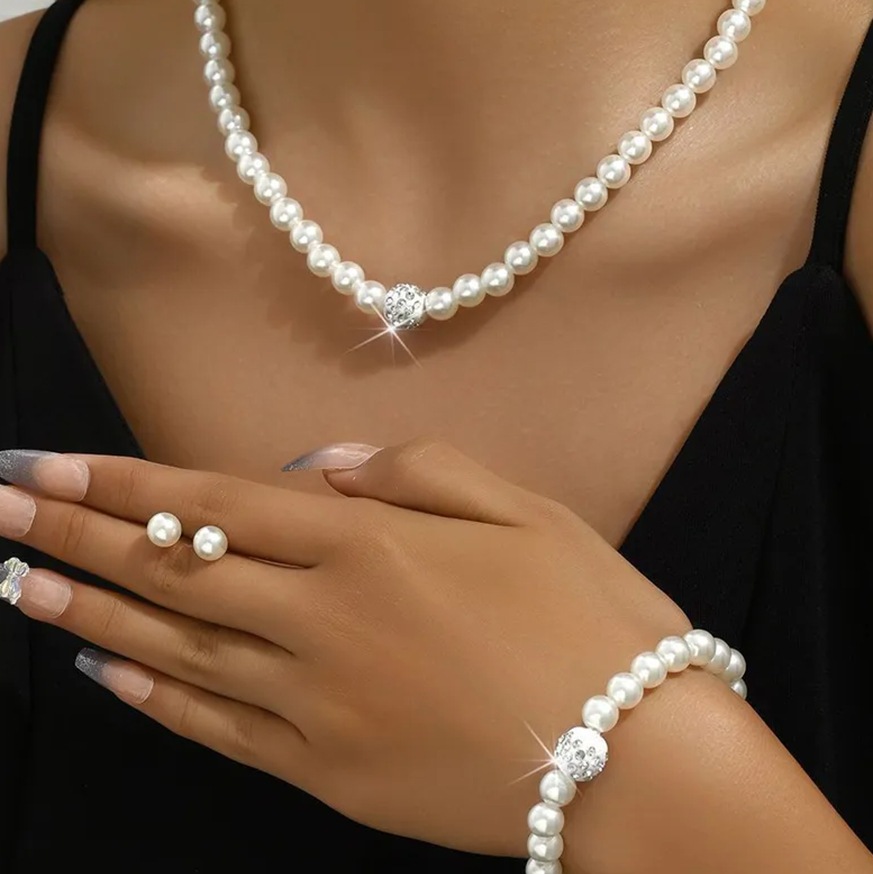 クリエイティブなイミテーションパールネックレス、ブレスレット、イヤリングの3点セット、海外販売用ブライダルジュエリー、アクセサリー、越境商品